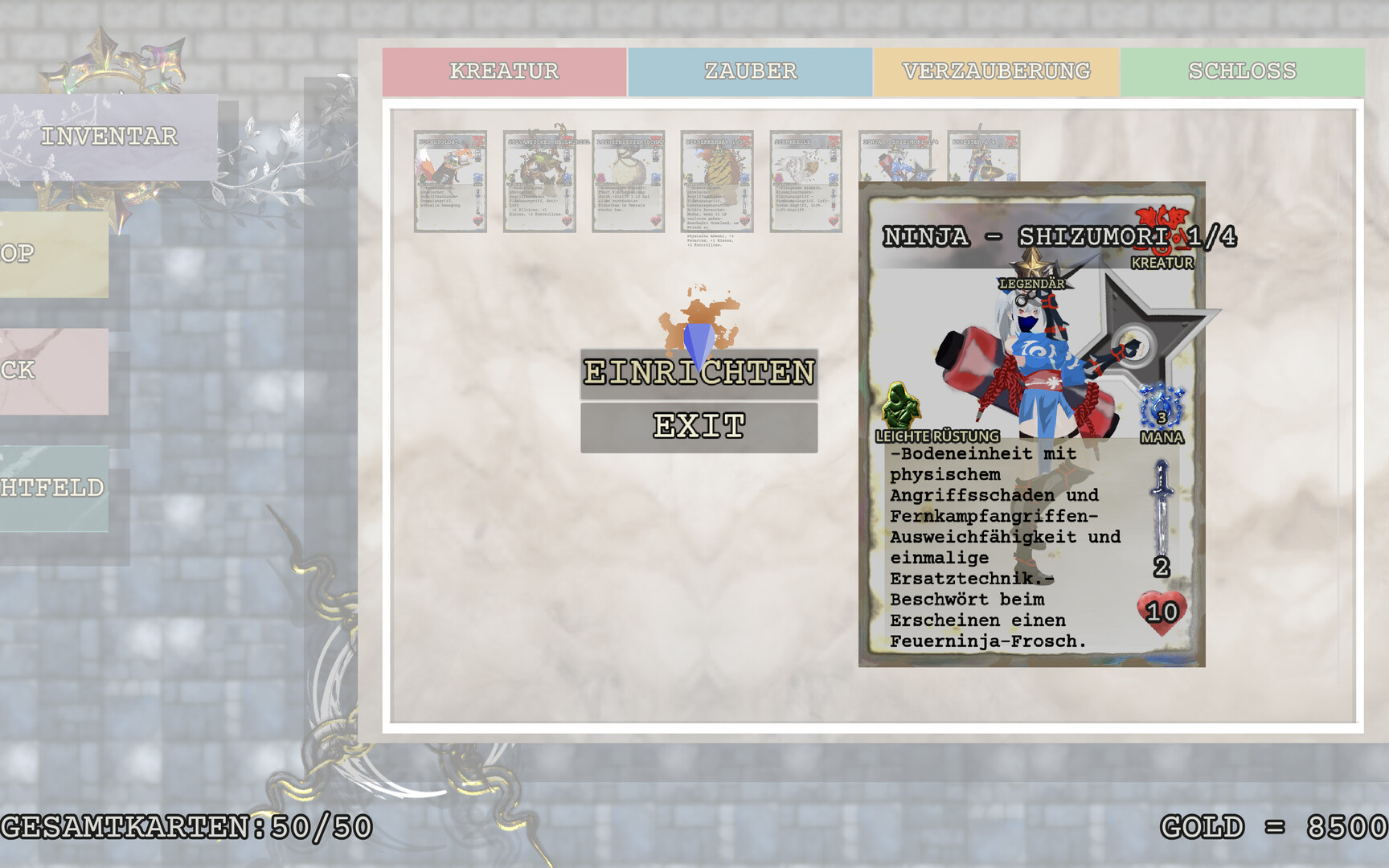 Betritt das Spiel, werde der oberste Magier, kaufe wie verrückt Karten und Burgen, beschwöre verschiedene Kreaturen und wirke mächtige Zauber im Kampf.