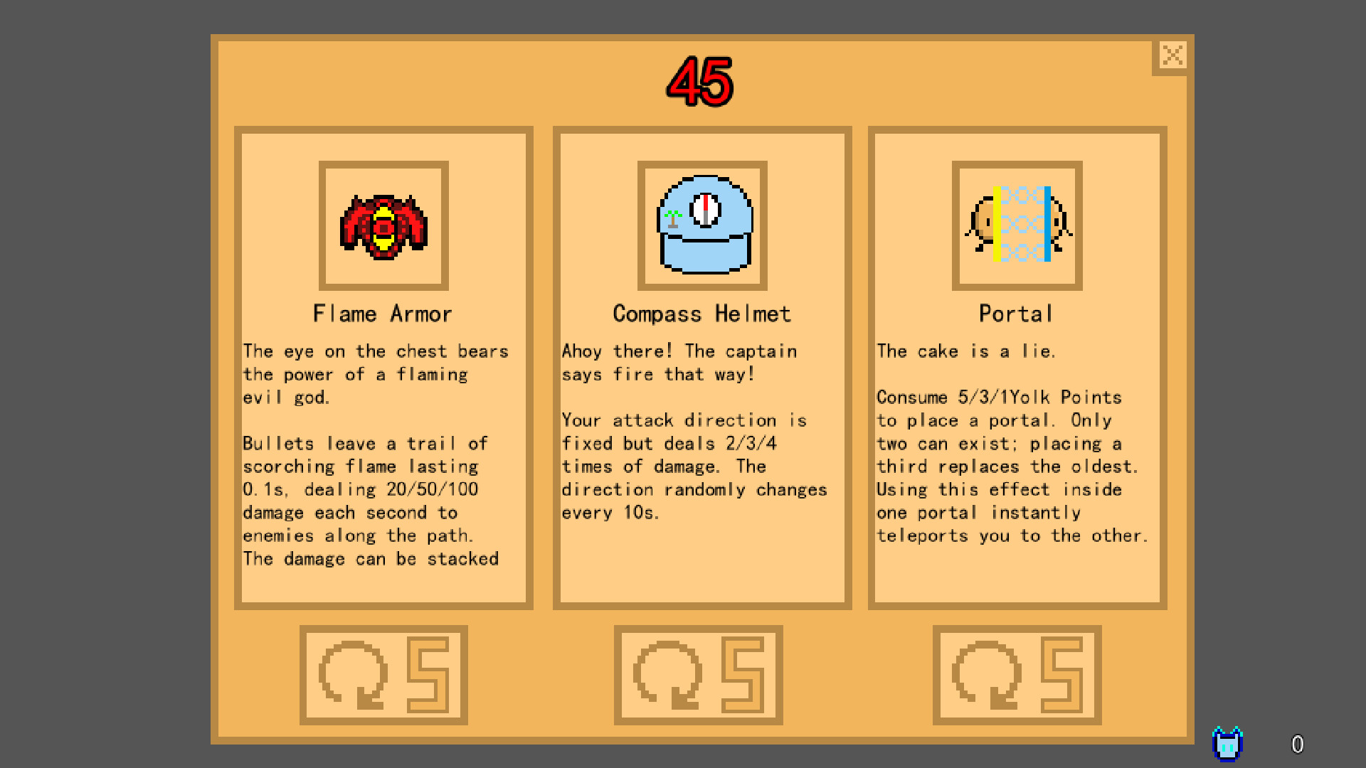 This project is a free game created by the developer out of personal interest and as a portfolio piece. The game took three months to complete, with all music, art, programming, and writing created independently by the developer. In the game, the protagonist plays as an egg kid who was executed by the king and sent to hell. Seeking revenge, they make a deal with a demon to assist in their plans. Inspiration was drawn from games like Lone Star Hunter, The Binding of Isaac, Bratato, and Slay the Spire. The game adds a time-based resource mechanic to the traditional roguelike genre, allowing players to dynamically allocate the number of monsters each round. The initial difficulty is high, requiring multiple attempts to gradually unlock the monster and item bestiary, gaining off-round growth and enhancing base stats. Once all equipment bestiary are unlocked, players can customize their starting gear, which changes the gameplay by focusing less on survival and more on gear-building. The game also pays homage to some well-known games' items or characters, offering surprises for players. The main game takes about one to two hours to complete, while the full achievement run takes approximately five to ten hours. We hope players find joy in the experience.