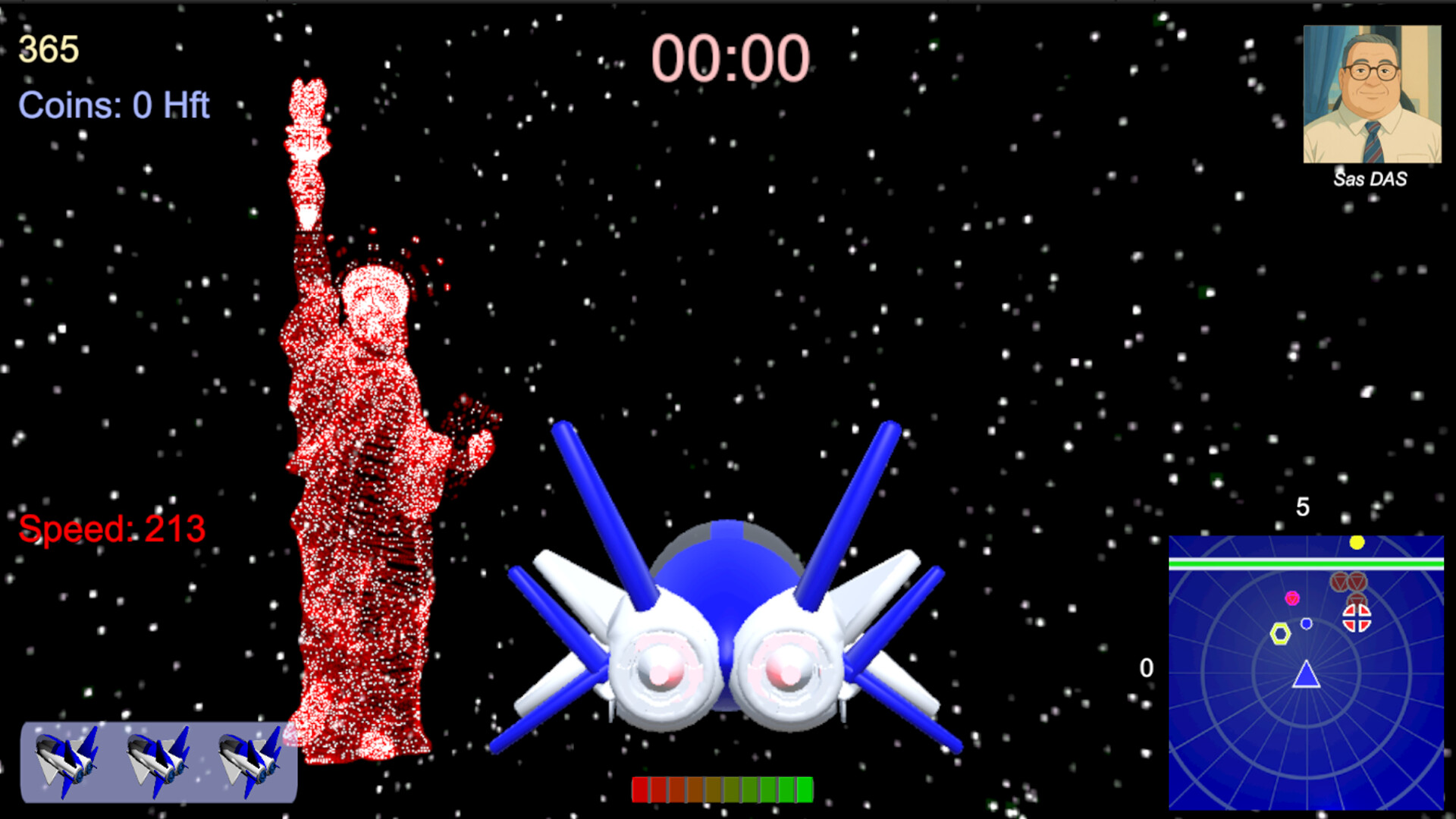 But be careful: enemy ships are on patrol and won’t hesitate to fire at you. Survive their attacks while collecting essential resources such as missile ammunition, energy for your laser shots, and fuel reserves. Every decision matters as you navigate and optimize your route.