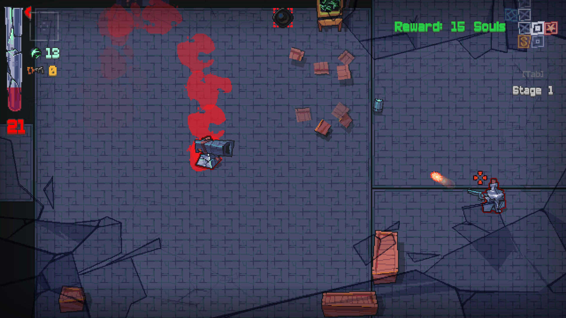 GLASS x CANNON is a risky top down shooter roguelike. You are always very low health so you'll have to dodge and use blood to survive. Collect items and get stronger to defeat a powers, crossing into our world.