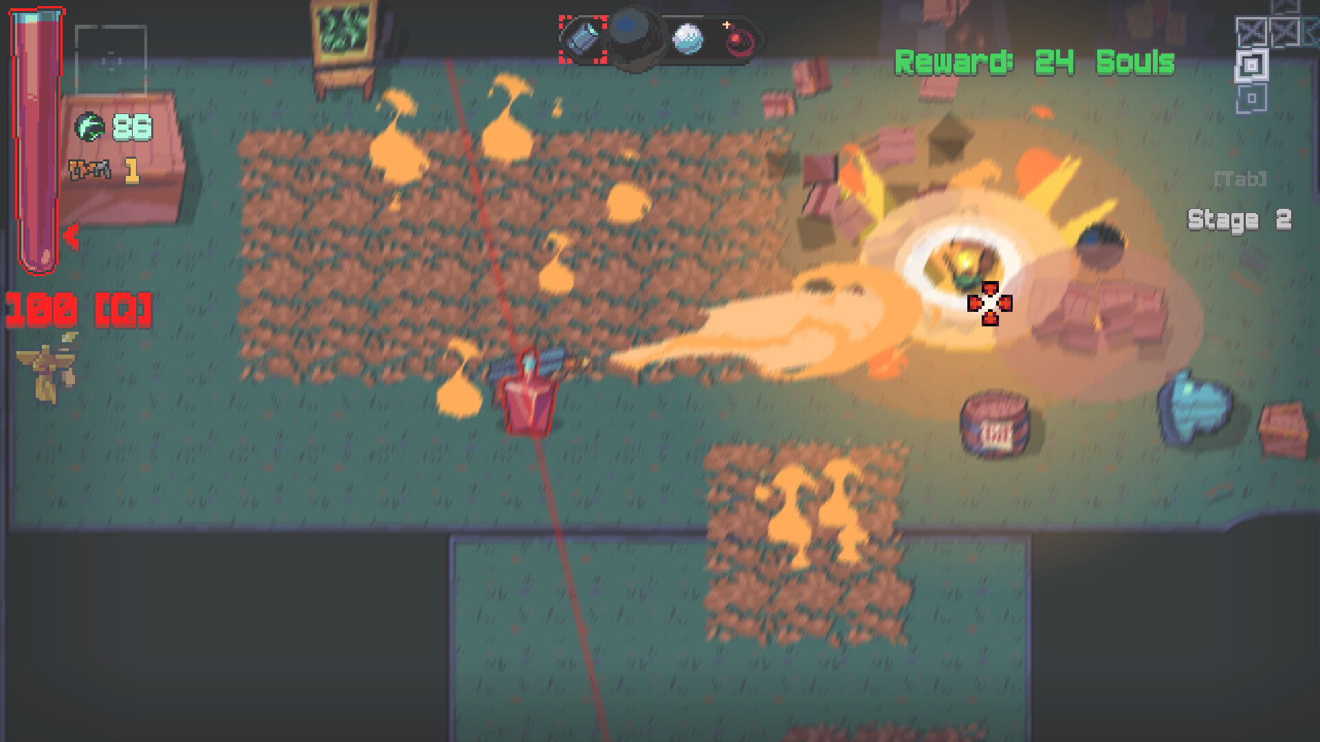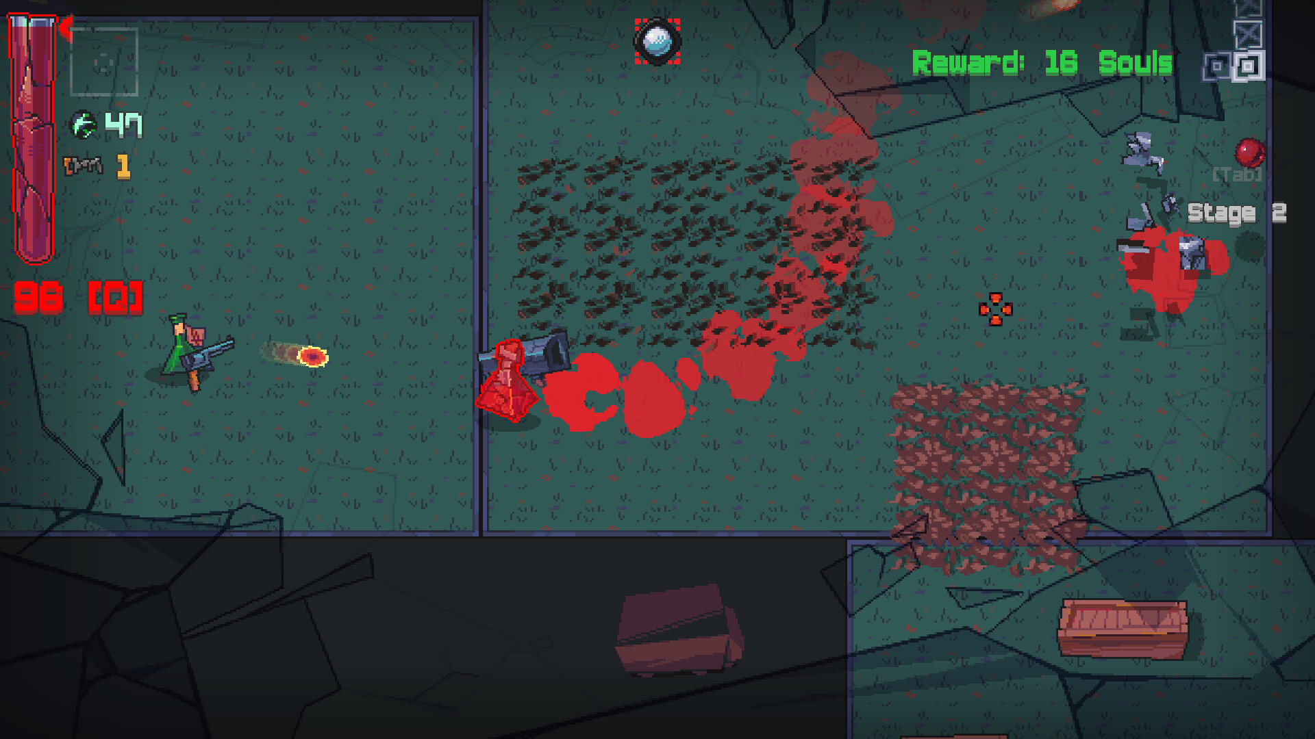 GLASS x CANNON is a risky top down shooter roguelike. You are always very low health so you'll have to dodge and use blood to survive, collecting items and getting stronger to defeat a powers, crossing into our world.