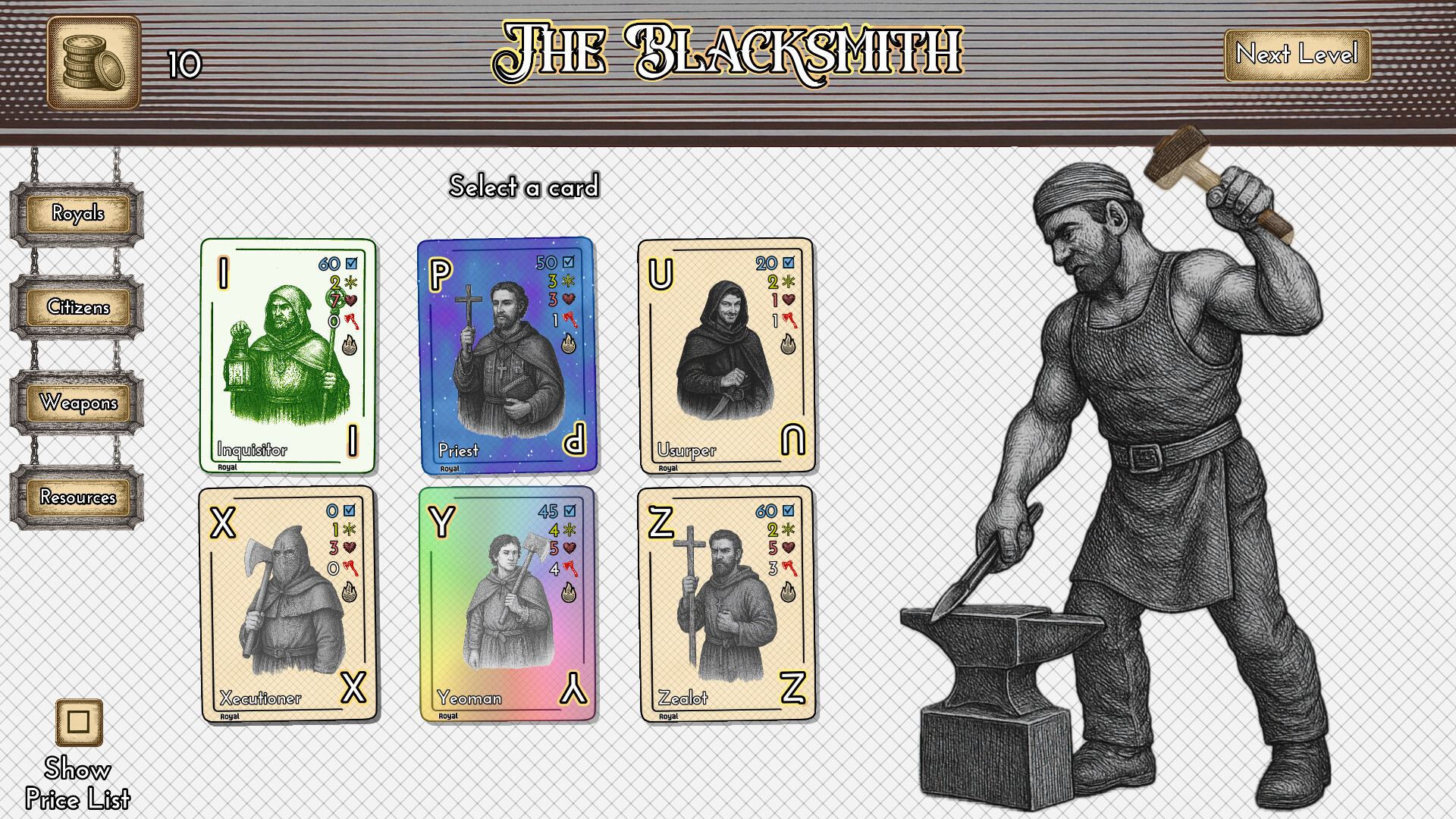 Luxuriant is a fantasy card-driven roguelike deck-builder where you assemble and manage a deck of Royals, Citizens, Weapons, and Resources to outmaneuver Enemies in turn-based combat, earn Influence, progress through evolving levels, and unlock new cards for future runs.
