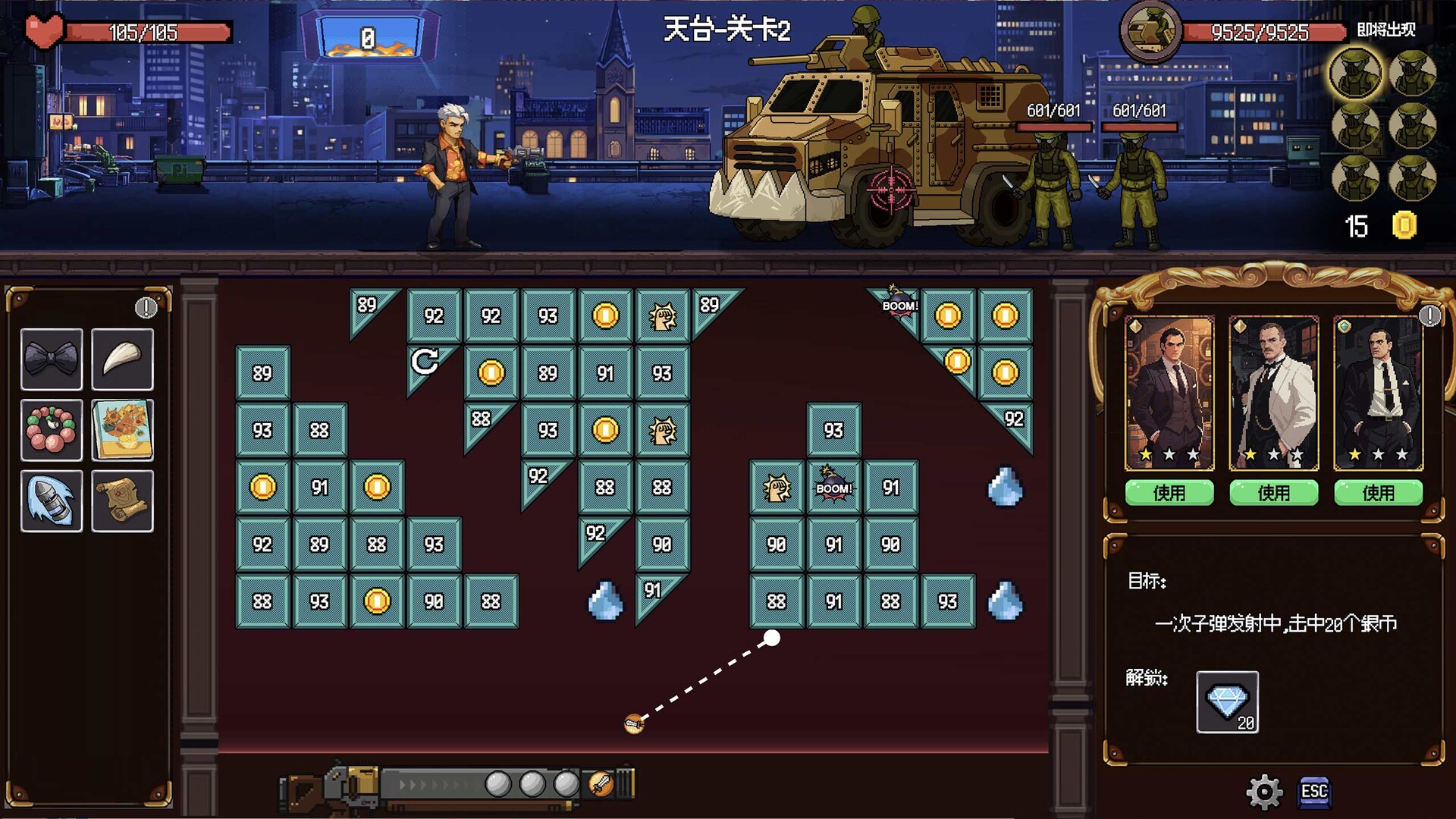 《一枪头!》是一款融合柏青哥、肉鸽与回合制策略的独特弹珠策略游戏。收集千奇百怪的子弹与装备,搭配传奇黑帮大佬的强力支援,精心规划你的弹射路径与发射序列。扣动扳机,上演一场酣畅淋漓的弹幕盛宴,一枪清台!