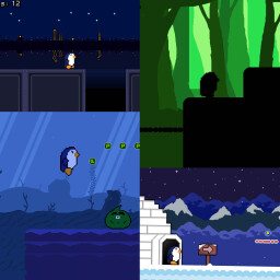 Inspired by a quirky TV show, the penguin sets out on a journey to find 12 golden budgies scattered across colorful and varied levels. A mysterious ostrich from the show has promised that anyone who collects them all will achieve the ability to fly.