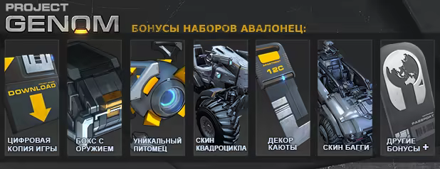 Приобретая игру сейчас, вы автоматически получаете уникальный набор Авалонца, который будет недоступен никому в будущем, включающий в себя: