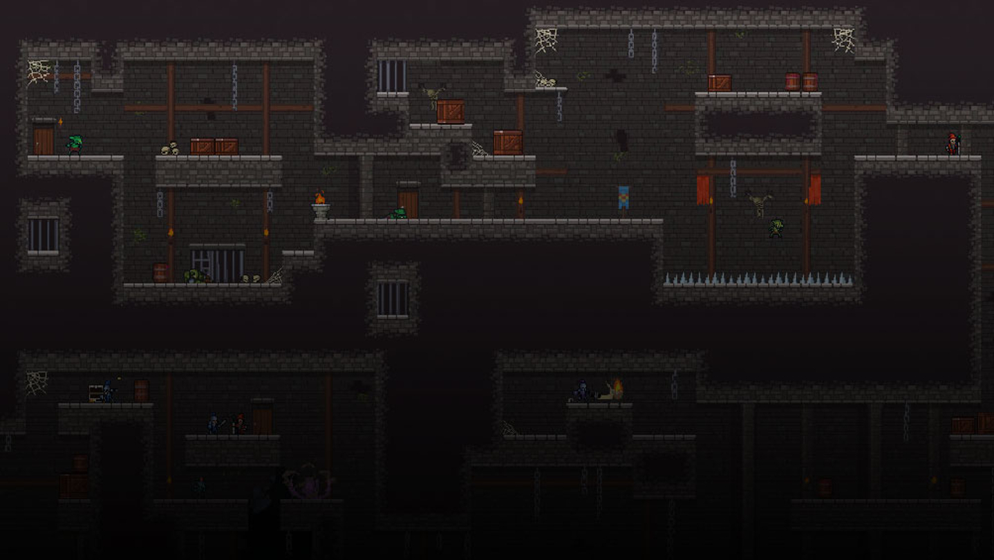 A delightful comedy platformer where you play as a goblin trying to escape from a team of greedy adventurers. Handcrafted levels with pixel art and carefully programmed physics interactions: climb walls, hang from chains, push barrels onto the heads of your enemies, lure them into traps with the promise of gold coins…