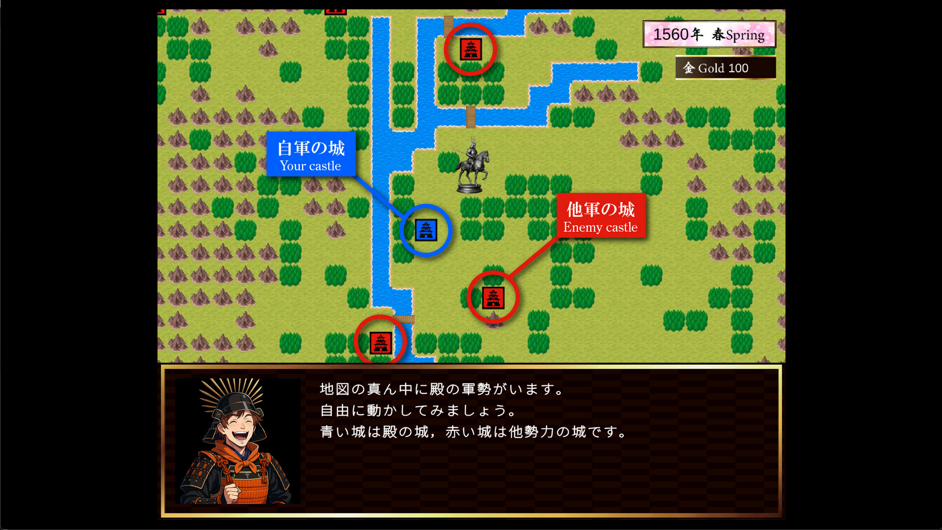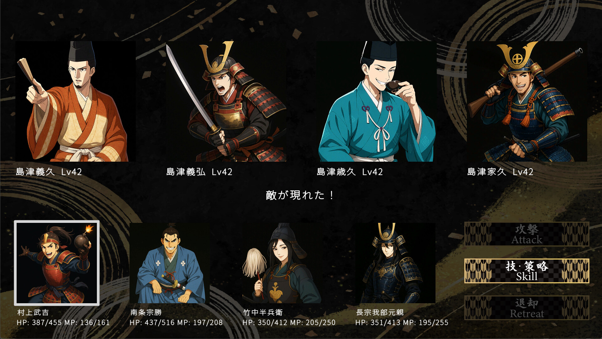 このゲームは,日本の歴史において最も魅力的な時代の1つである,「戦国時代」を舞台にしたコマンドRPGです。戦国時代の雰囲気を感じられるさまざまな要素を楽しんでください。
