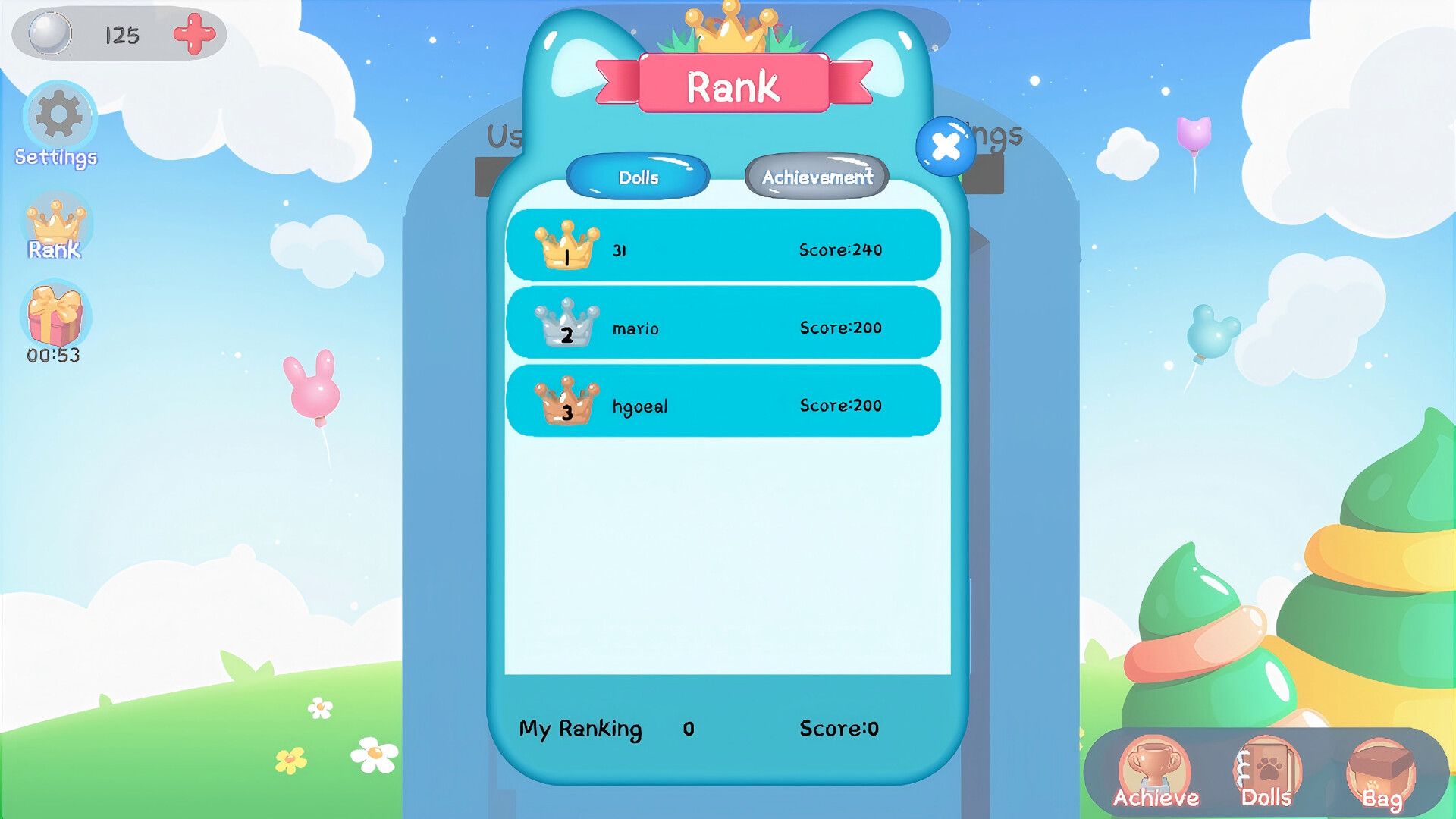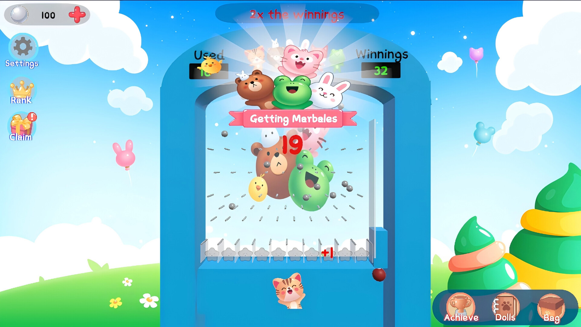 A pinball machine simulation game. Pull the lever to launch the ball, and you will receive a reward if it falls into the red light hole. During the game, there is a chance to obtain dolls, which can be collected in one's own album or sold on the market to other players.