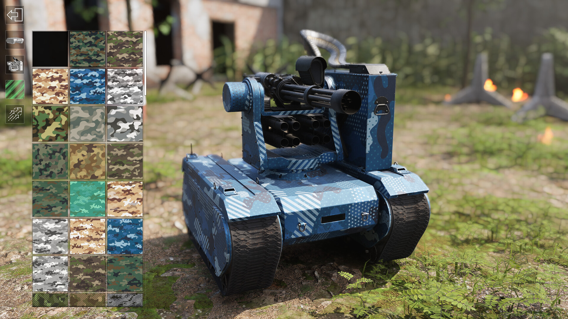 Enter the arena with mini tank drones (UGVs) and unleash chaos on a fully destructible battlefield! Choose from a variety of tank drone types, camouflages and assault turrets - from rapid-fire rotary miniguns to heavy machine guns and rocket launchers. Each weapon affects your strategy and fighting style.