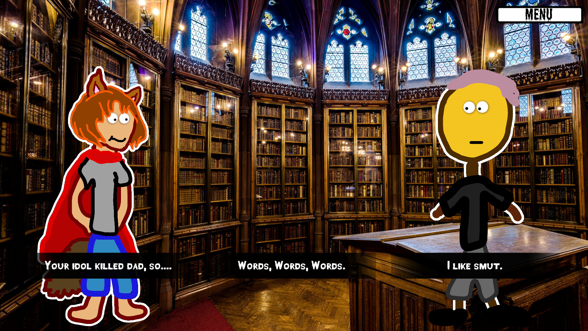 This is a story-driven visual novel where your emotions are your attributes. Choose how Hamlet reacts, and certain stats go up, while others stay the same. Your fluctuating emotional state wiill unlock roads to go down, romantic targets to pursue, and sometimes (okay, so often times) ridiculous chaos. Or miss entire paths completely due to the choices you've made.