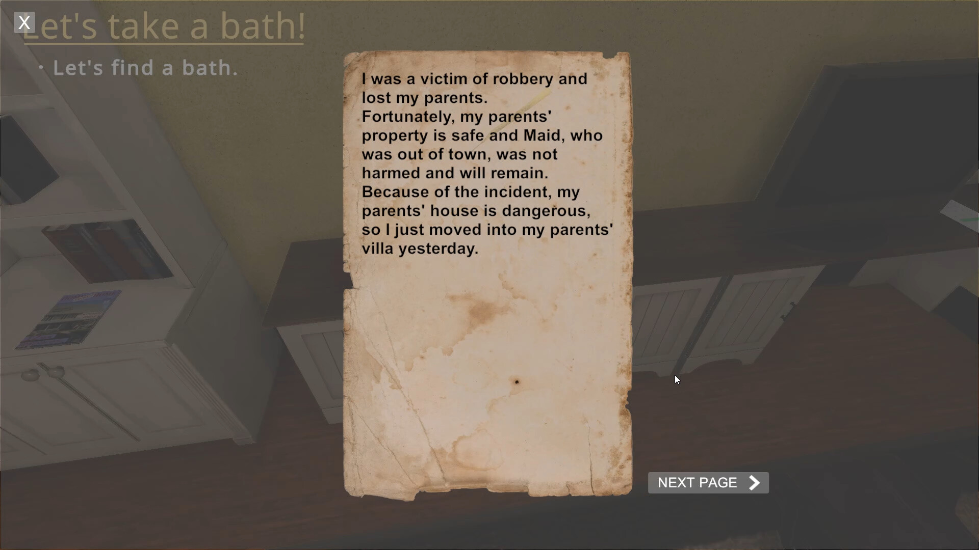 You and your maid have moved to a new house after losing your parents in a robbery. You have just moved and your new house has many problems, and you are trying to solve them.