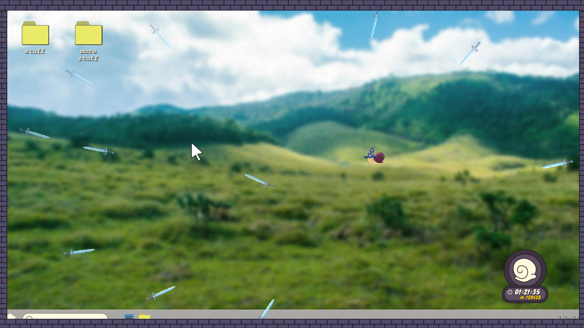 A idle desktop snails-like. Every now and then a murderous snail assassin is hunting your mouse cursor, turning your desktop into a chaotic bullet hell. How long can you survive?!
