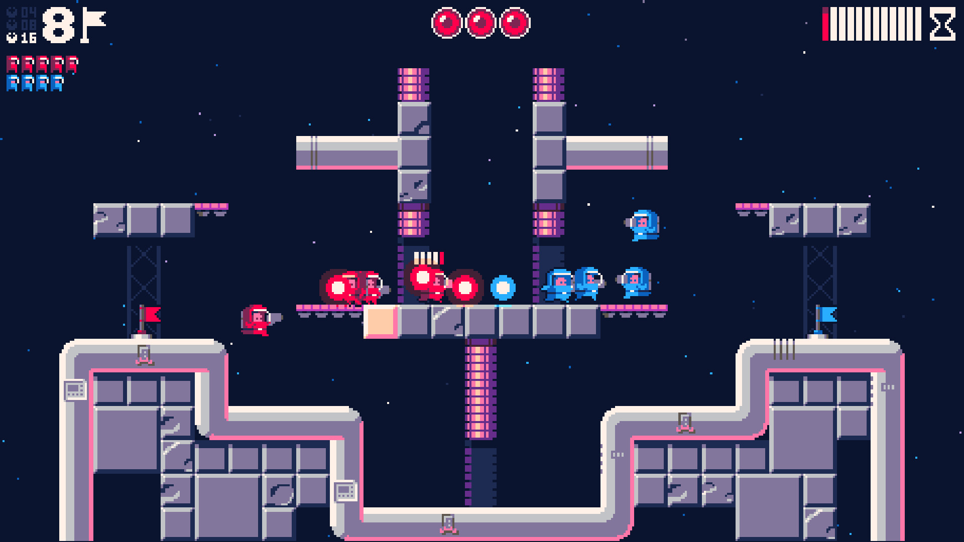 The game features 8 unique levels to progress through, from a radio tower, to the warping crystal mines and the low-gravity asteroid fields. Toggle and combine upgrades with your medal budget, and revisit the different levels to earn even more medals!