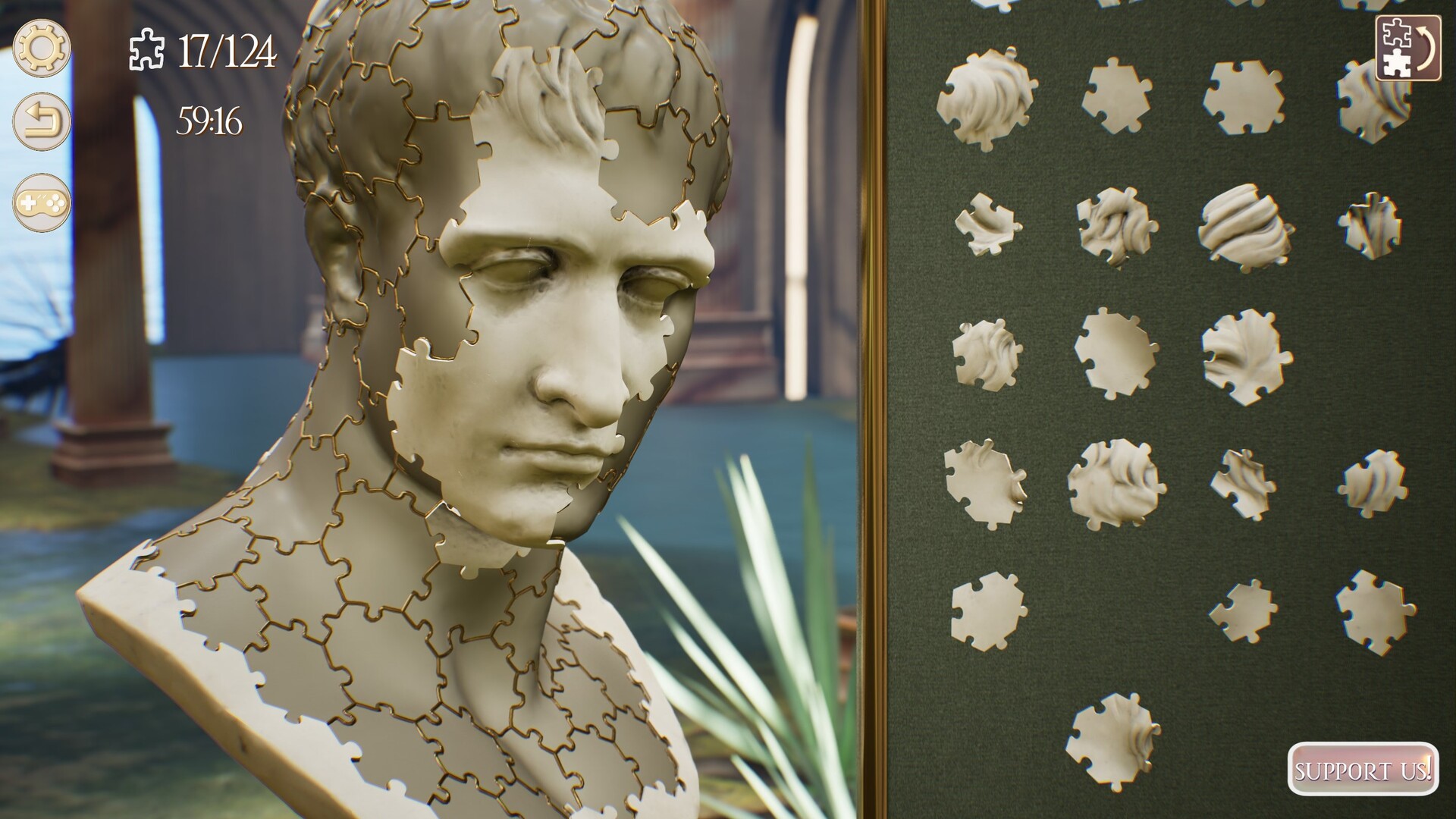 Assemble in four different maps: two dream-like stylized classic museum rooms with natural elements, one dramatically lit 'Sculptor's Shop' level made of wood and marble and a Zen-like classical garden besides a waterfall. All the levels are hand-crafted, designed by an artist from scratch. We are committed to creating environments that are perfectly aligned with our message and we want to honor the sculpture puzzles to the best of our ability.