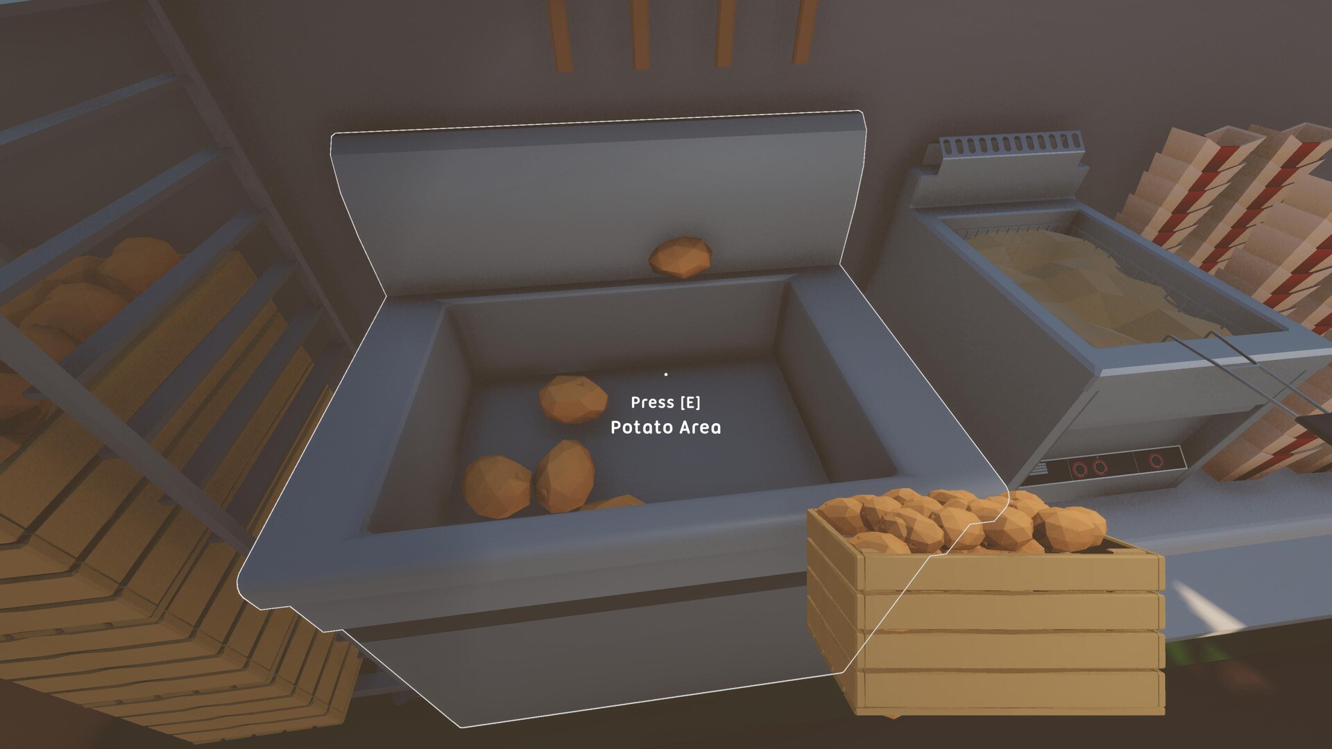 Cruise through a peaceful little world from a top-down isometric view, park in busy areas, and hop into your compact kitchen to cut, fry, and serve fresh potato fries. Once you park, the action shifts to immersive first-person mode, where timing is everything!