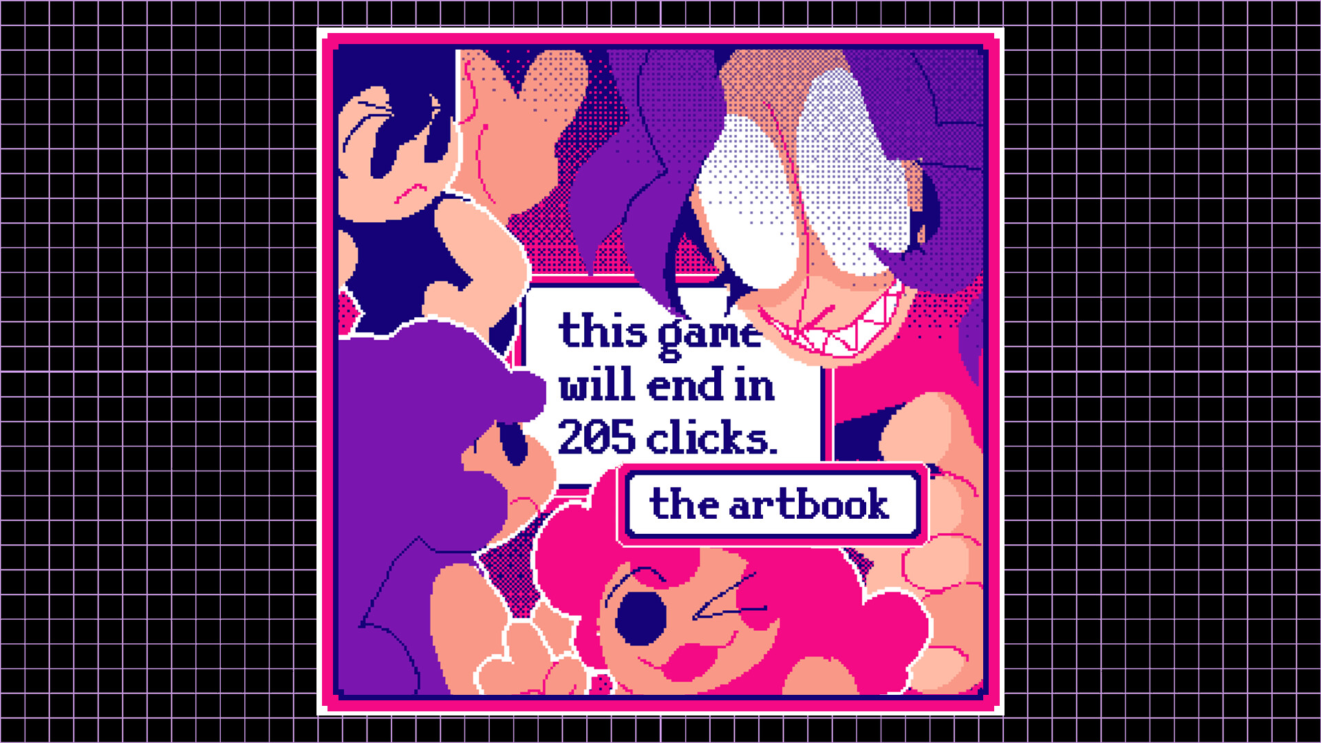 ✨ To find the artbook when you've bought it, find “this game will end in 205 clicks.” in your Steam Library, right click, go to Local Files, Browse, and you should find the PDF there! ✨