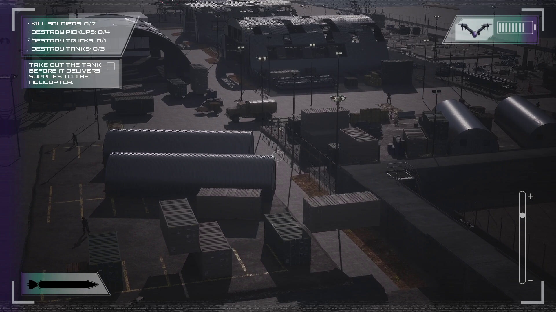 Fly a kamikaze drone through fast-paced FPV missions. Dodge bullets, sneak past jammers and radars, and crash into tanks, troops, and enemy bases. Discover diffferent drones and face tougher challenges in every level.