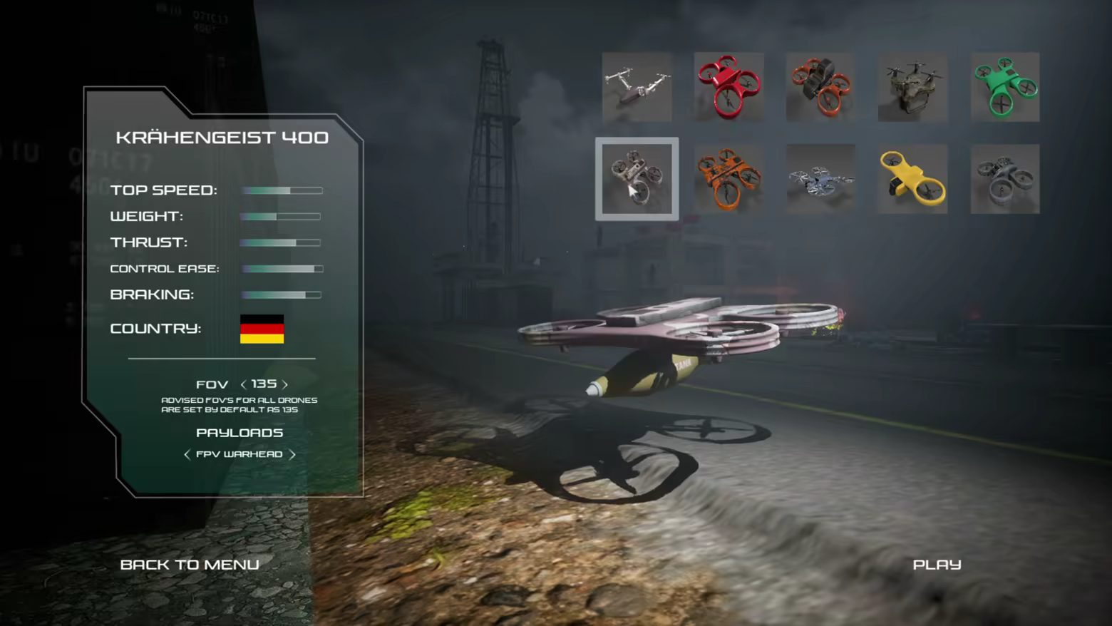 Meistere verschiedene Drohnen, jede mit einzigartigen Flugeigenschaften und explosiver Nutzlast. Rüste deine Flotte auf und passe sie deinem Spielstil an, egal ob du schnelle, wendige Angriffe oder schwere, kraftvolle Attacken bevorzugst.