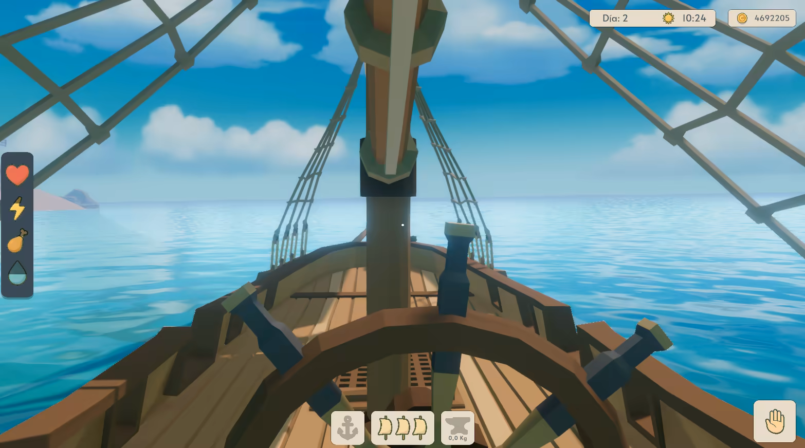 • 🍗 Survival elements: manage food, water, and rest for yourself and your crew.