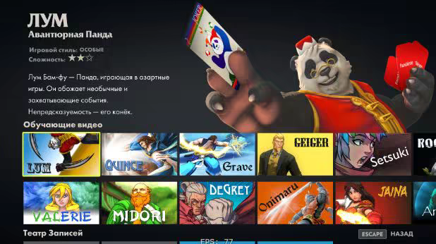 • Специализированные Видео. Для каждого персонажа мы сделали видео, конкретно поясняющие суть, какие приёмы они используют, как они играют, в чём их цель. Всё рассказывает главный разработчик Дэвид Сирлин.