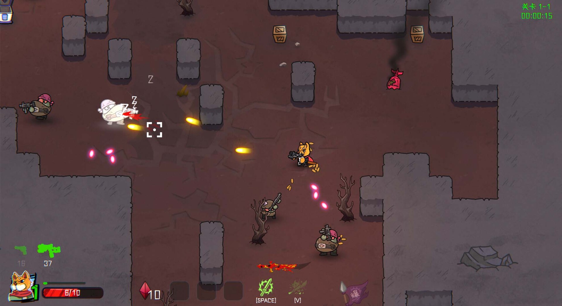 《枪刃游侠》是一款废土题材Roguelike俯视角射击游戏。你将利用枪弹和刀刃,在随机生成的辐射禁区中猎杀怪物、收集突变异能,突入危机源头,直面最后的挑战。