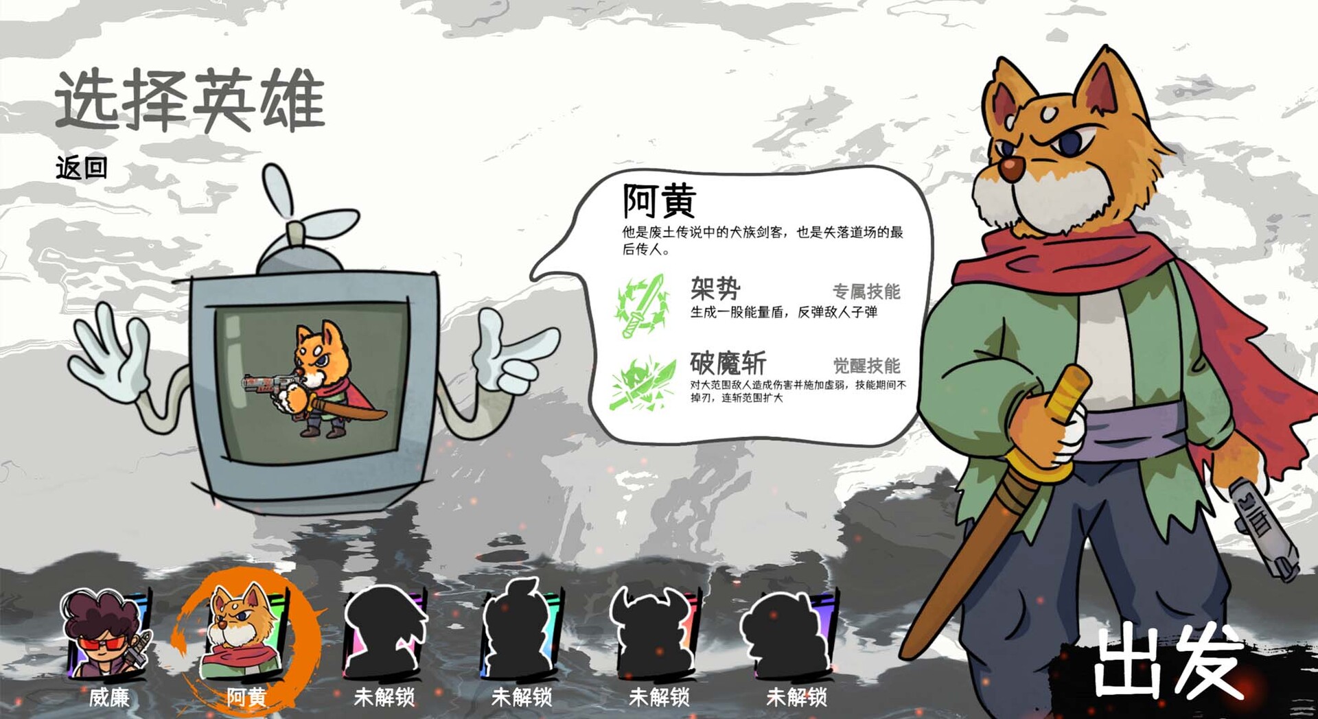 • 关卡环境和怪物角色均采用手工绘制,希望您能沉浸于这个栩栩如生的卡通废土世界