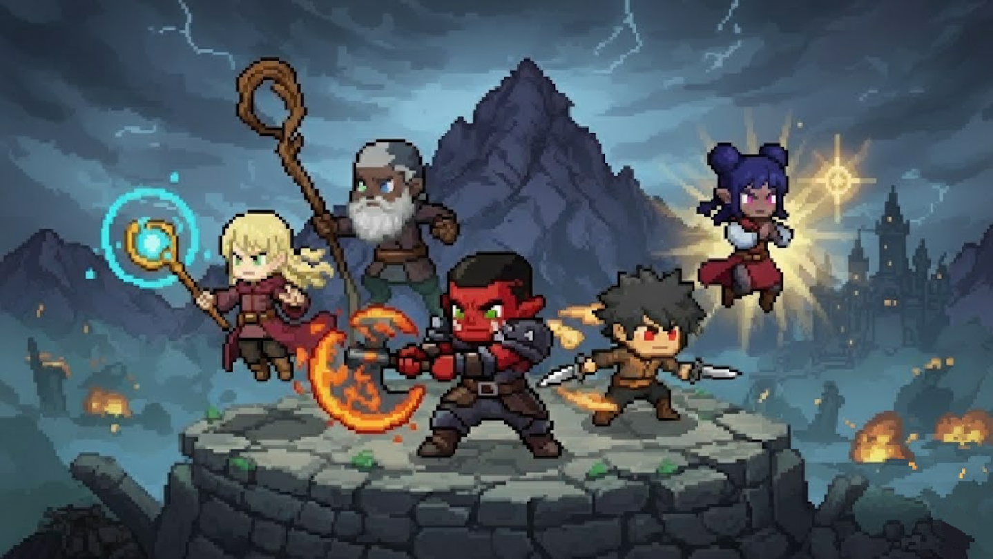 Lead a team of five heroes through a strategic roguelike autobattler built around skill rotations and stance control.