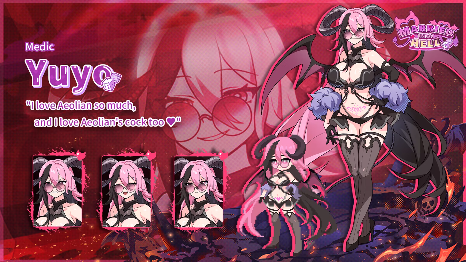 With quick (and horny) thinking, you vow to escort her across the 18 layers of Hell—not just to return her, but to propose to the Demon King!