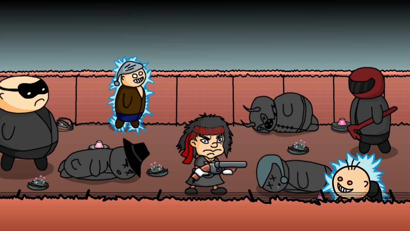Gran Theft Lure, or should we say Grand Theft Failure, is a 2D hand-drawn top-down arena shooter roguelite in which you must survive hordes of burglars for as long as you can. You play as your lovely gran, but age, it seems, has finally caught up with you, making you unable to kill your enemies directly with your weapons, as you were used to in your youth... In order to defeat the burglars, you must lure or push them into traps. May it be your electric fences all around your sweet garden, or the bear traps you’ve set around your beautiful flowers, or the hidden landmines that you’ve put in some of your fluffy bushes. "Can't be too careful kid", as my sweet gran used to say.
