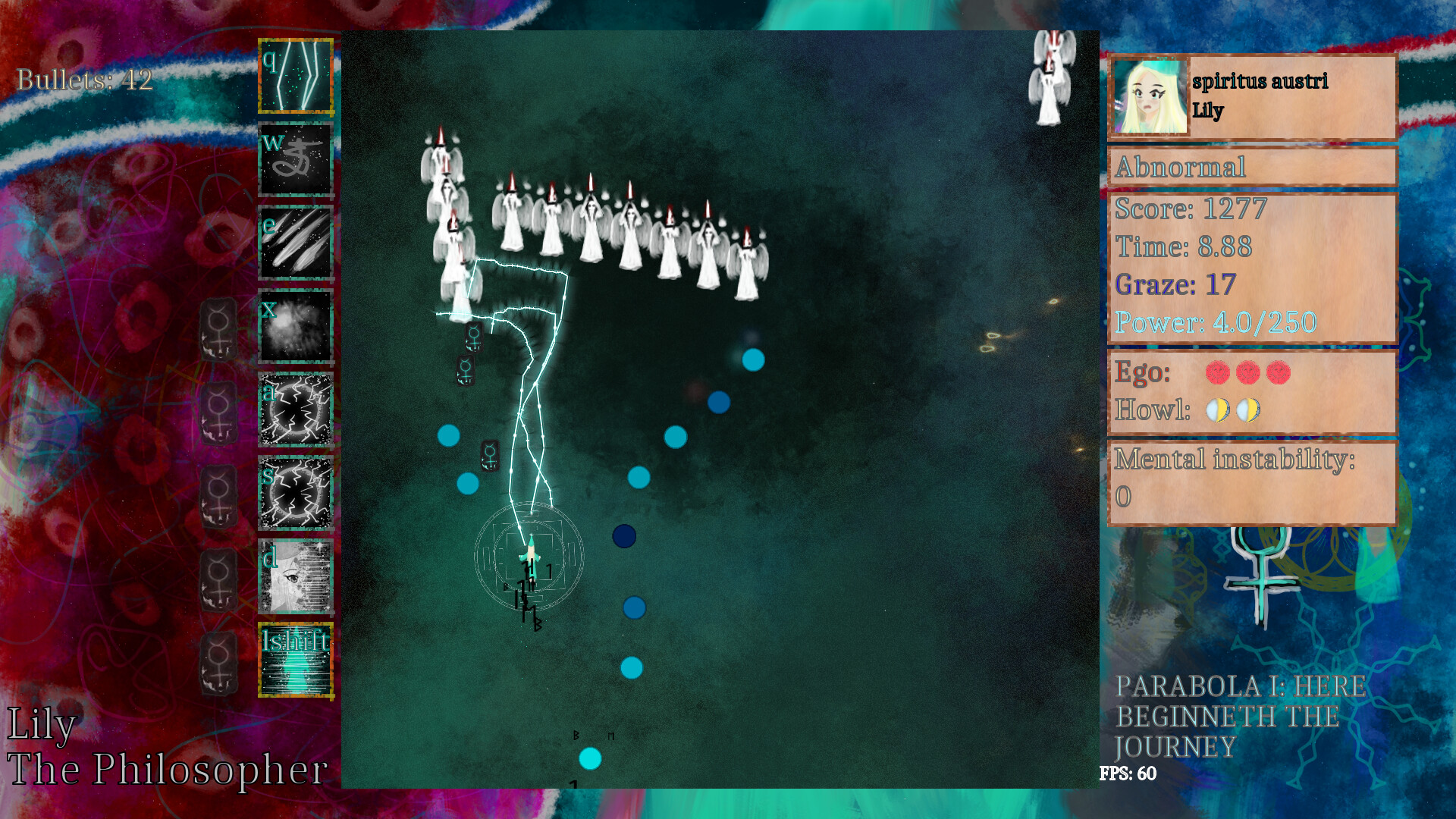 A bullet hell game about a girl exploring the Imaginary World of the Western culture. Encounter various symbols and discover their meaning as well as learn various aspects of sorcery and magic!