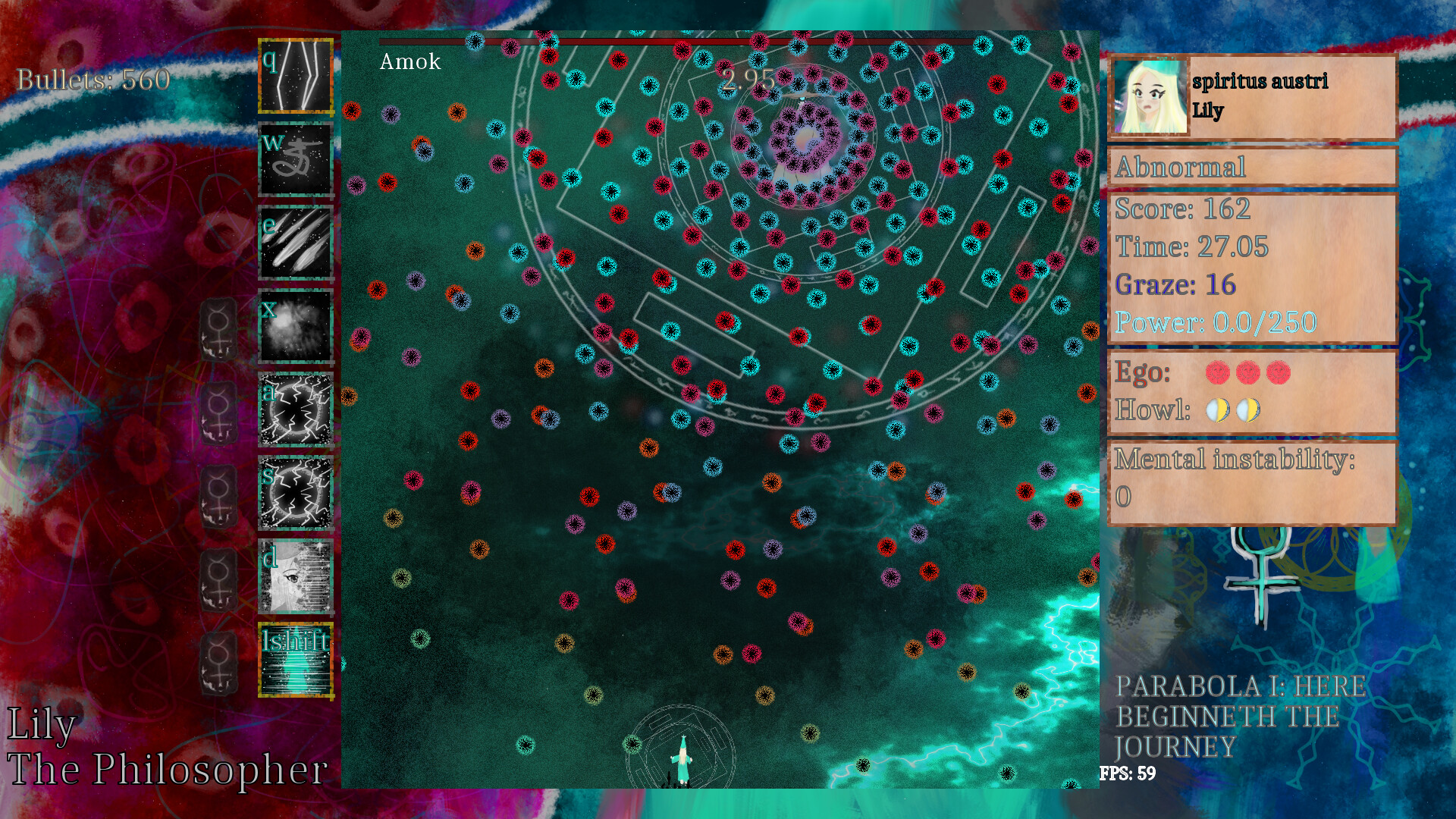 A bullet hell game about a girl exploring the Imaginary World of the Western culture. Encounter various symbols and discover their meaning as well as learn various aspects of sorcery and magic!