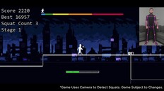 This is a runner game but to jump you do a real life squat! The game uses the camera to detect squats.
