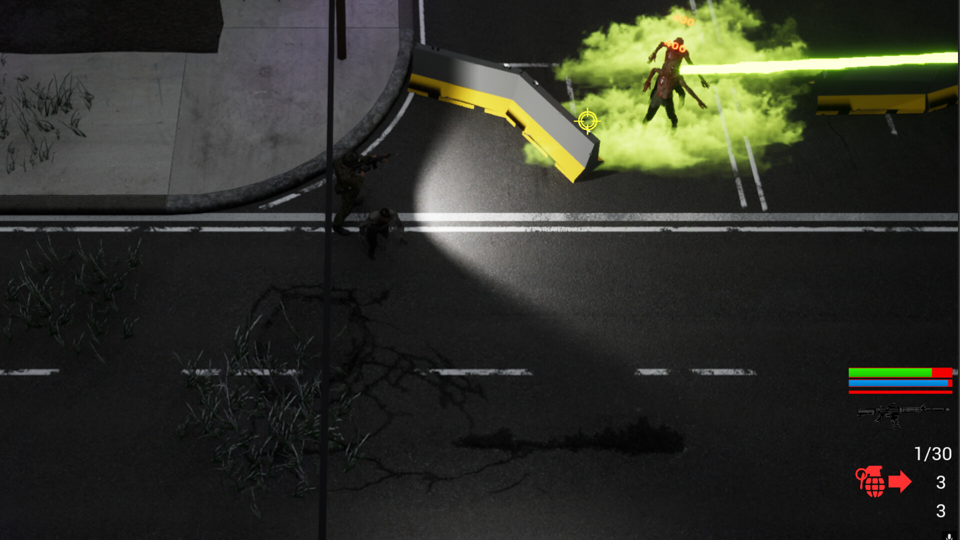 “Right now, you can expect a fun experience of shooting zombies while you make your way throughout our city level. We have 4 weapons available to the player; The Assault Rifle, The AK, The Shotgun and your Sidearm, as well as 2 Throwable Types, The Grenade and The Molotov. You can expect to face waves of nearly endless hordes and various boss types. The Boss types you can expect to fight are; The Bulker, The Spitter, The Brute and The Screamer. Each boss have different Attack Styles and Health Sizes.