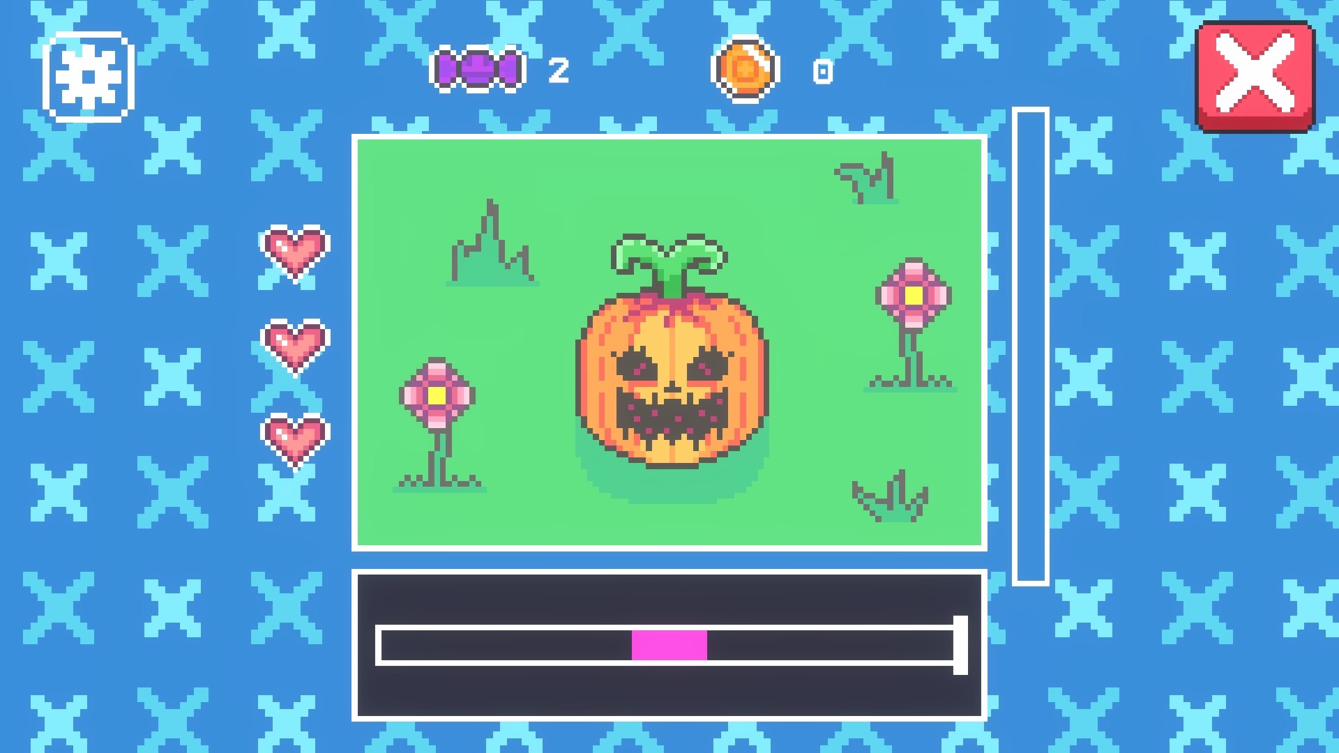 Feed and wash her through simple minigames — miss the timing, and you may lose hearts and get no reward. If hunger or hygiene drops to zero when the day changes, your pumpkin dies and the game resets.