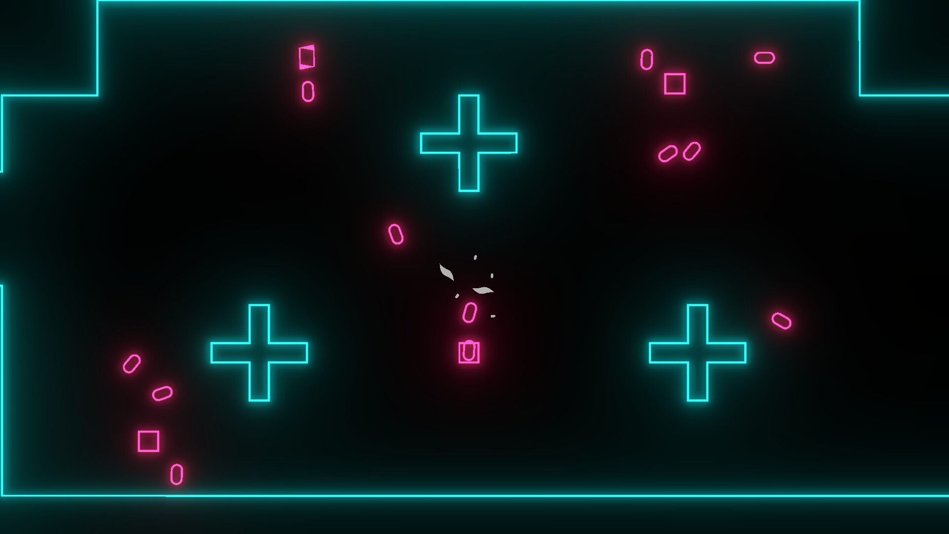 Arcabbit is a swing-focused 2D action game where you switch between left and right hooks to latch onto walls and floors, building speed along arcs as you race through neon stages.