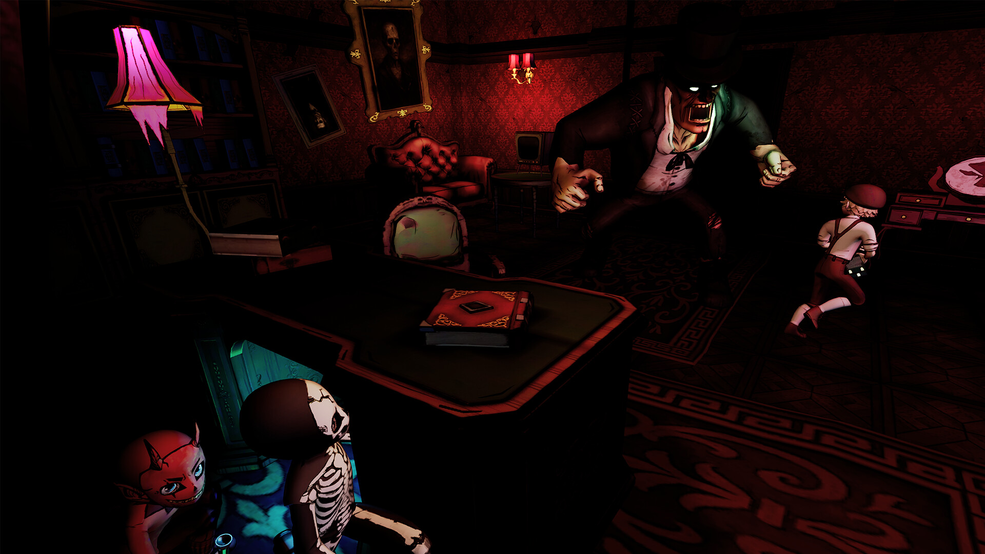 Every mansion has its own haunting—monsters with unique behaviors, environmental hazards, and secrets to uncover. From dolls that stalk you when you’re alone, to creatures that lurk in mirrors, each encounter forces you to think, hide, and act together. The child’s-eye view heightens the sense of wonder and fear, bringing everyday objects to towering, ominous scale.