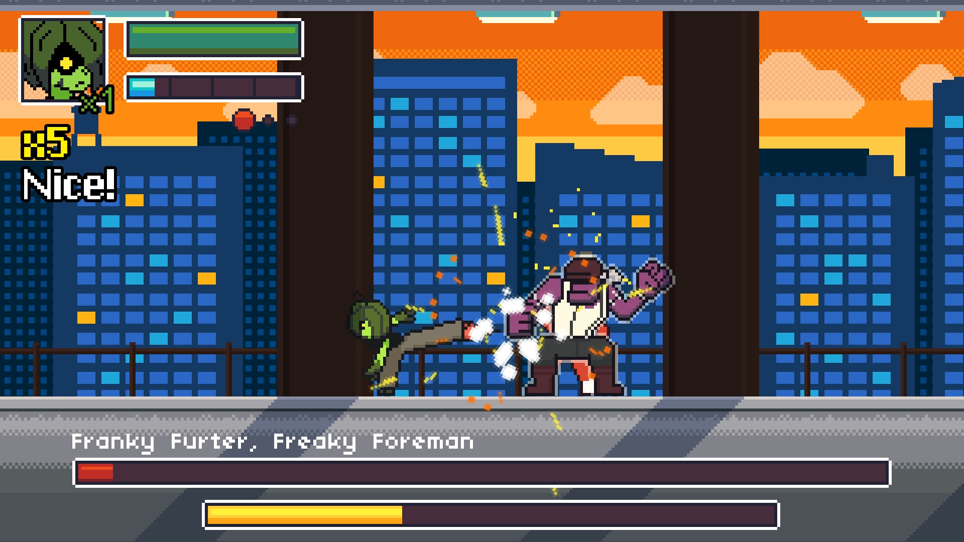 Bottom-Up Beatdown: Hostile Takeover is an intense 2D beat em' up set in a world dominated by corporations led by monsters! The only way out is up! Become a star solo or share the spotlight with friends in co-op mode!