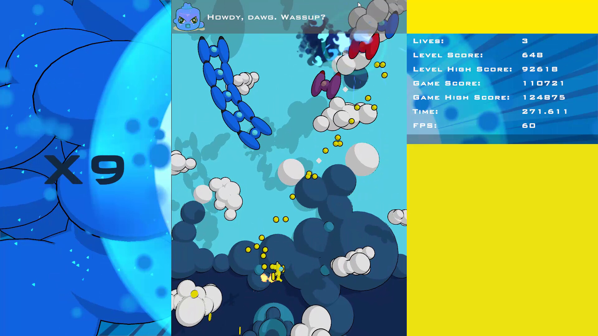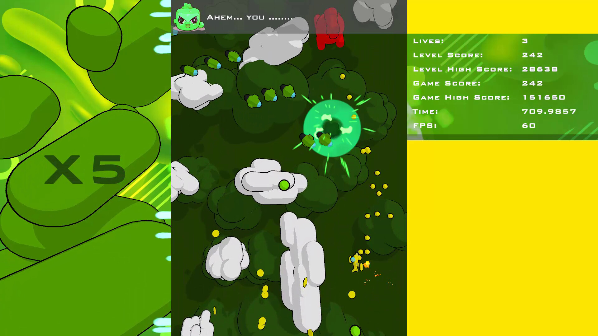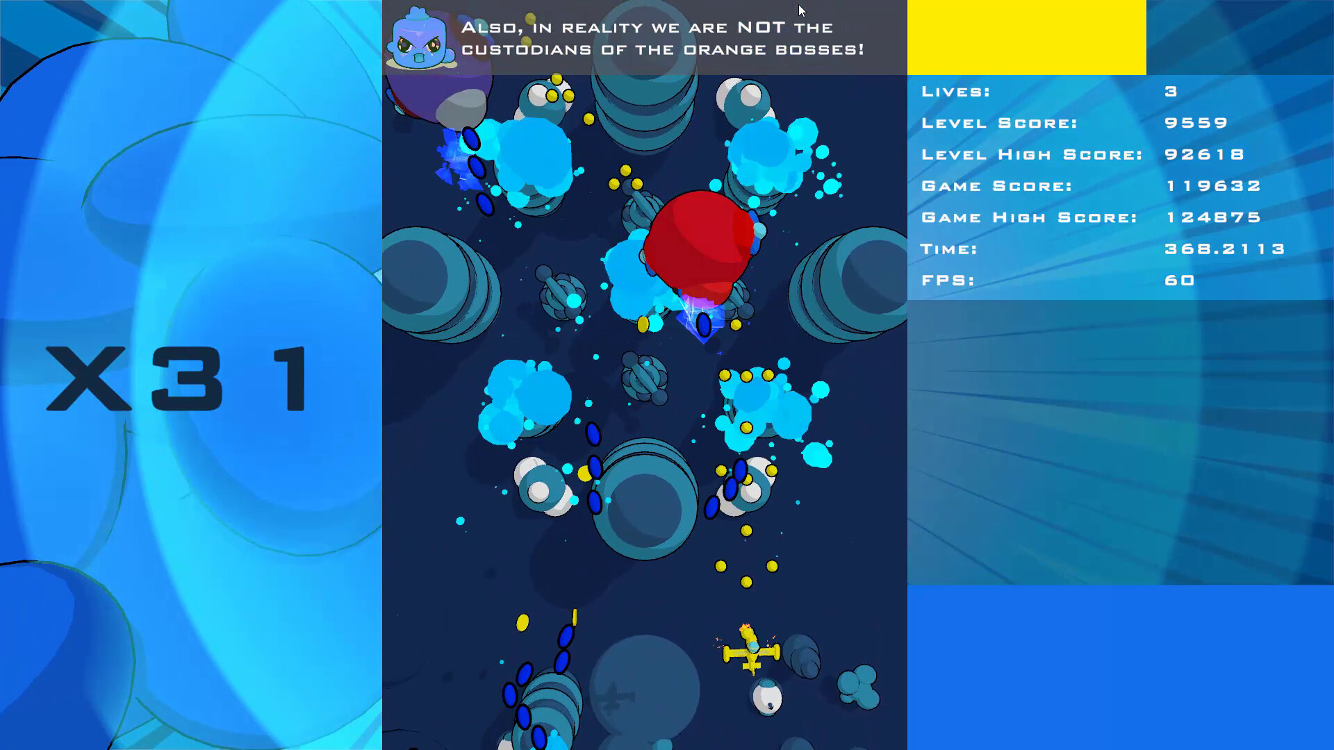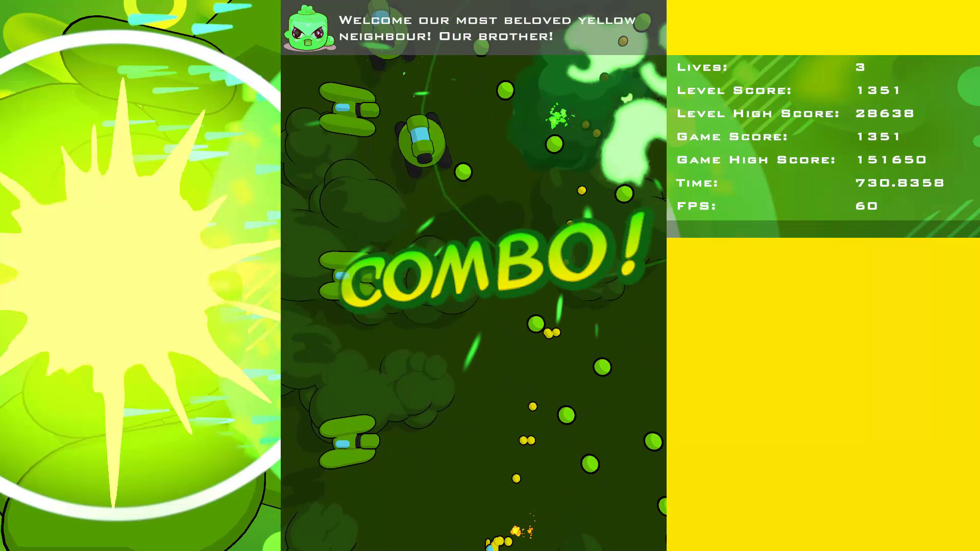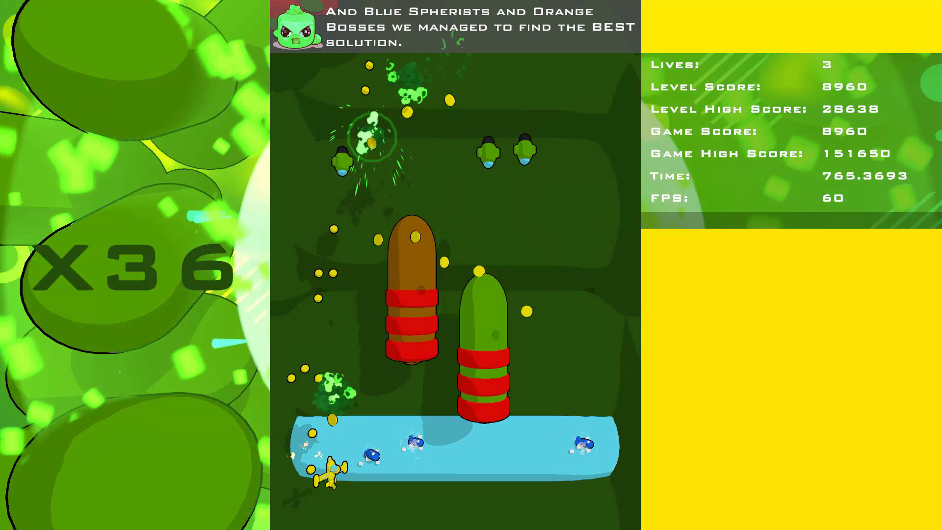 Minimalist colorful shoot 'em up with a story! Play as the yellow hero trying to get a turkey sandwich in a world divided by forms and colors. Will our hero get his sandwich? Who's behind this divided world?