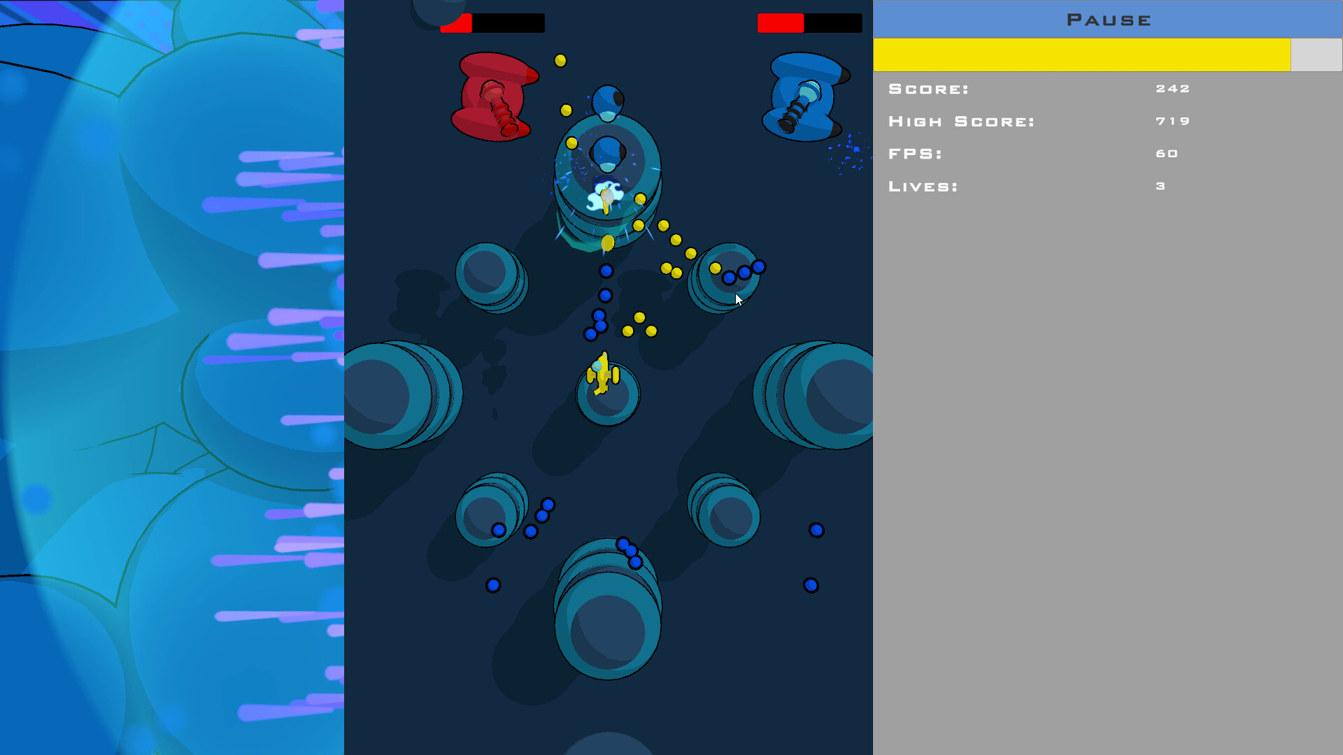 2.5D Shooter with a unique minimalist cartoony style and a quirky story. Enjoy the thrill and simplicity of a 2D shooter with 3D graphics and 3D view. I opted for a somewhat relaxing gameplay to give users a quick and pleasant experience as some other Shmups I played do feel too perfectionists and inaccessible to most players.