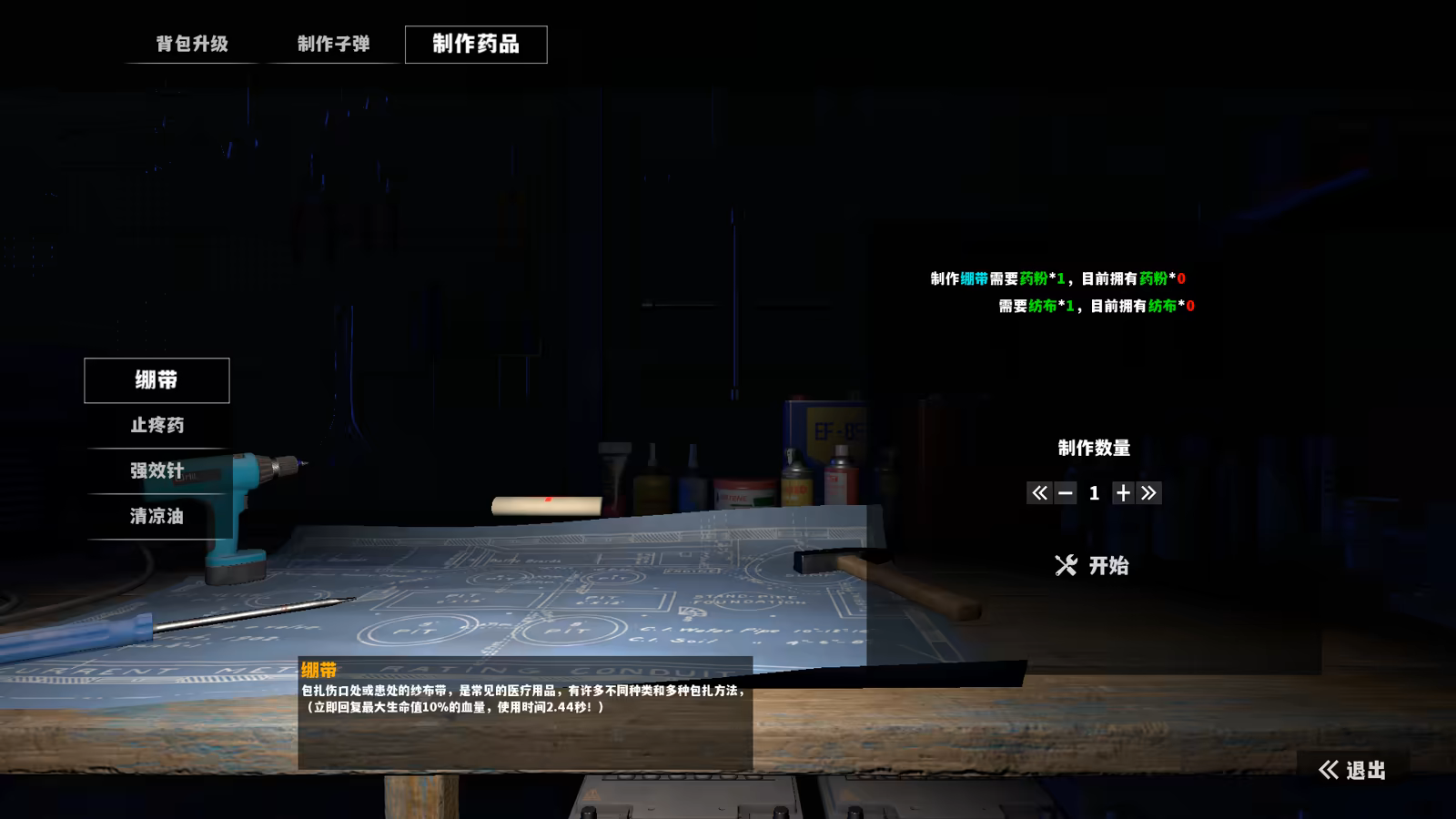 生存的物资可以通过击杀丧尸获得,也可以通过搜索获得原材料,制作自己需要的物资!
