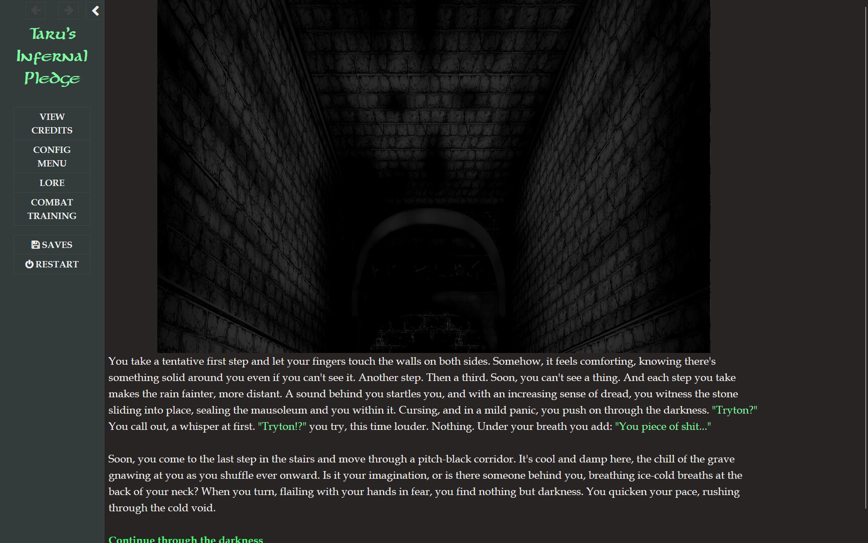 Taru's Infernal Pledge is a text-based adventure with digitally hand-drawn backgrounds and lewd art for all sex scenes. It focuses on consensual BDSM throughout the game, while delivering a dark and deep story that delivers shocking revelations of the otherworldly forces acting upon the world. Follow the events of the current timeline where Taru gets into trouble everywhere she goes. Her objectives: Find out who betrayed her and get her revenge, free her soul from the dark force that has claimed it, and free her body from her pledge to the demon, while honoring the terms of her deal. In parallel, follow the flashback events before her current predicament, where she and her gang take on the biggest heist of their careers, and witness the aftermath that saw her world turn upside down. In both the current timeline and the flashbacks, your choices matter and shape the story that unfolds.