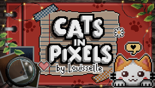 In Cats in Pixels by Louisselle, you find yourself in your cozy room on a quiet night, sitting at your desk and about to open a beautiful art sketchbook by the artist Louisselle.