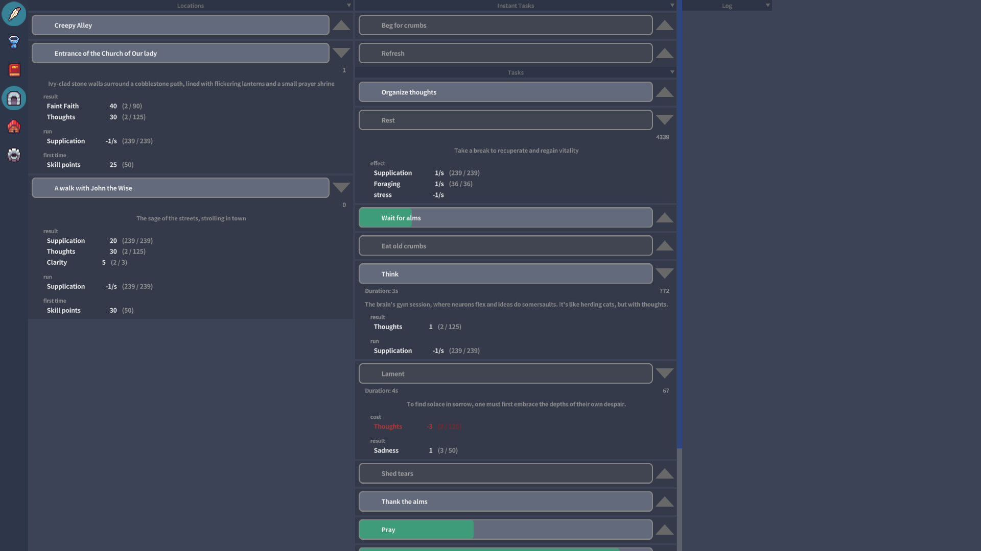 You play as a beggar in an idle incremental game where you beg for food. Become a priest, a thief, a rat lover, or a sadistic pyromaniac. But first, could you spare some food?