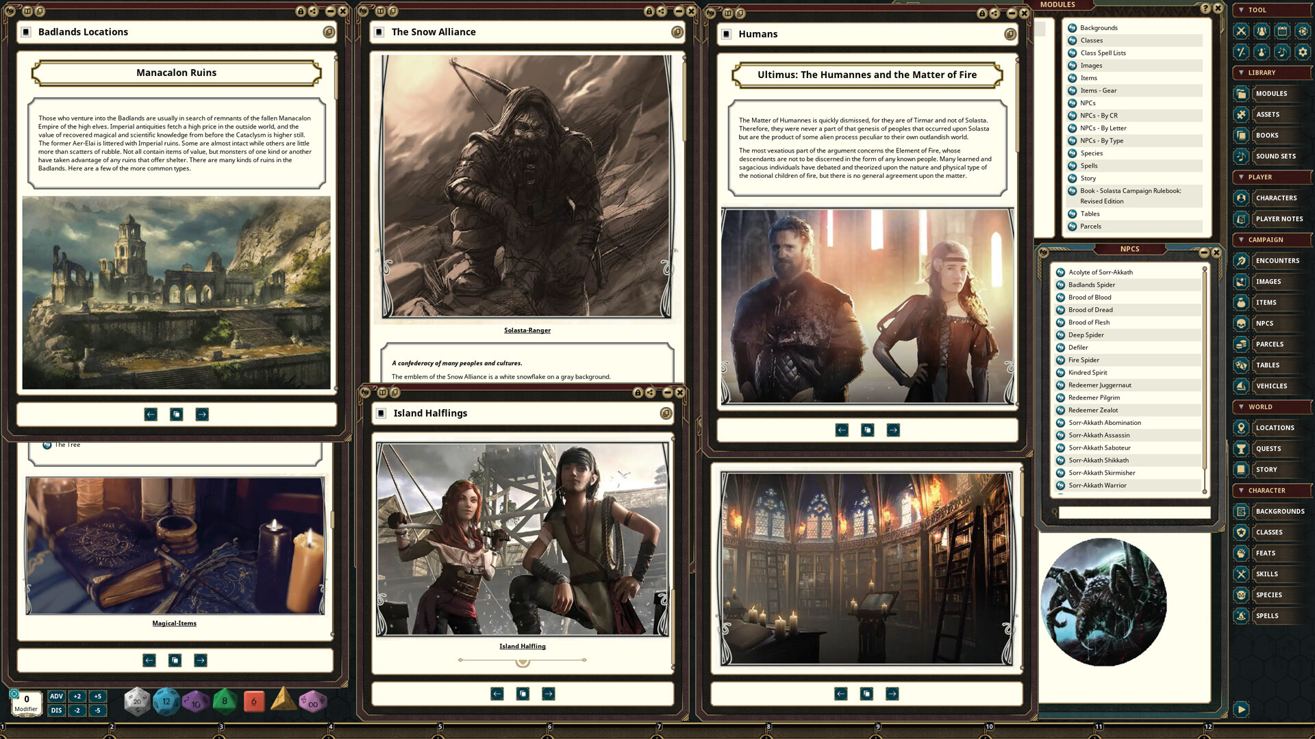 • The complete history of the world of Solasta and a breakdown of its major religions.