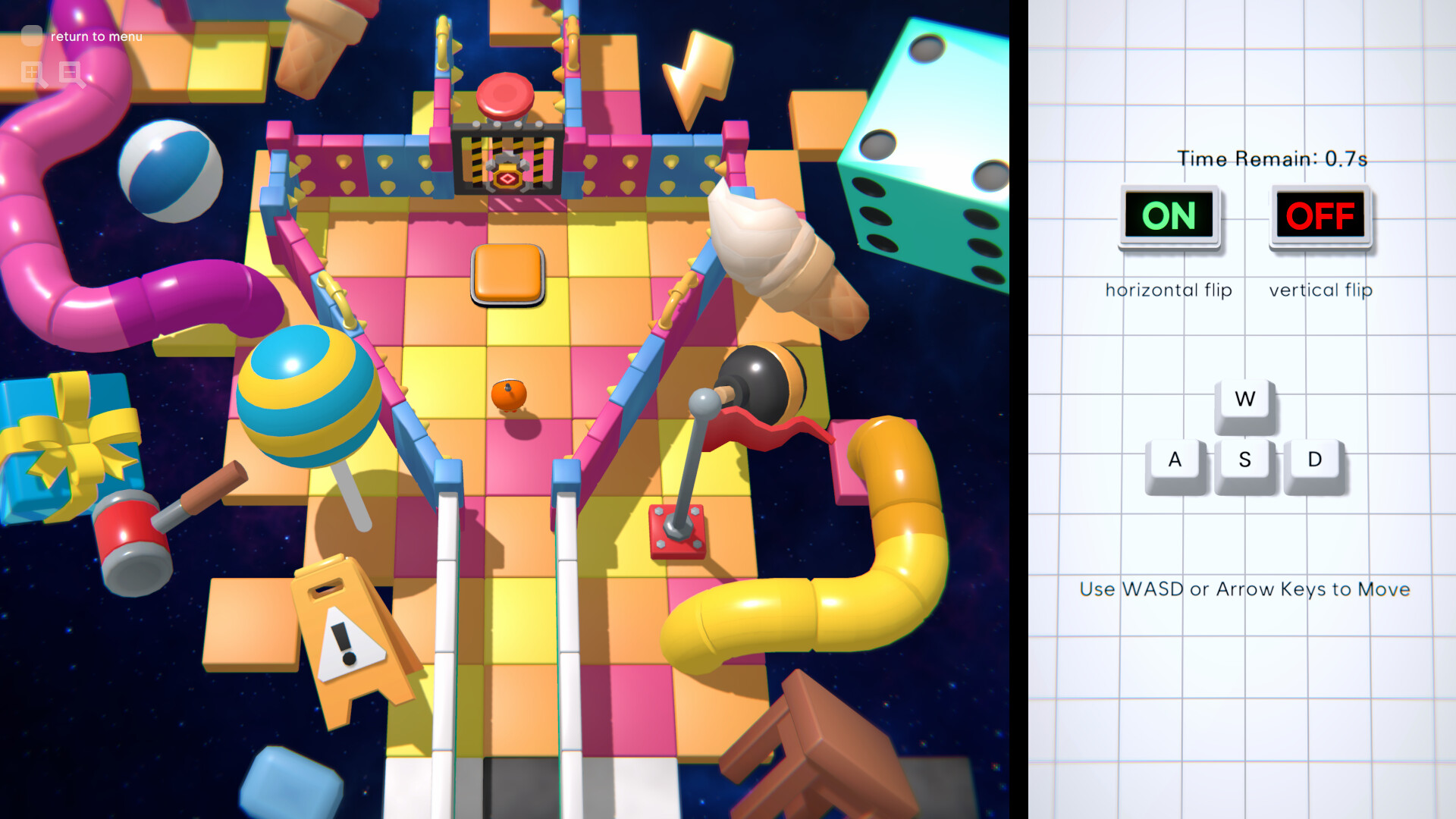 Et platformspil, der spilles med 20 forskellige controllere. Når du klarer en bane, ændres styringen. Brug alle muse- og tastaturtaster—og al din dygtighed—til at gennemføre den ultimative prøve og blive verdens bedste robotpilot!