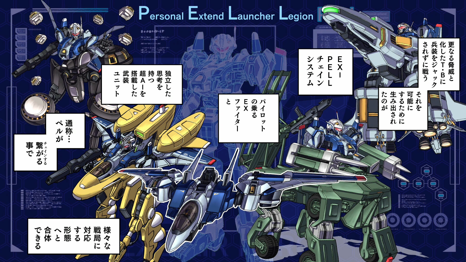 人類の新たな脅威に立ち向かうため、地球連合軍は可変合体戦闘メカ「EX-PELL(イクスペル)」を戦線に投入する。