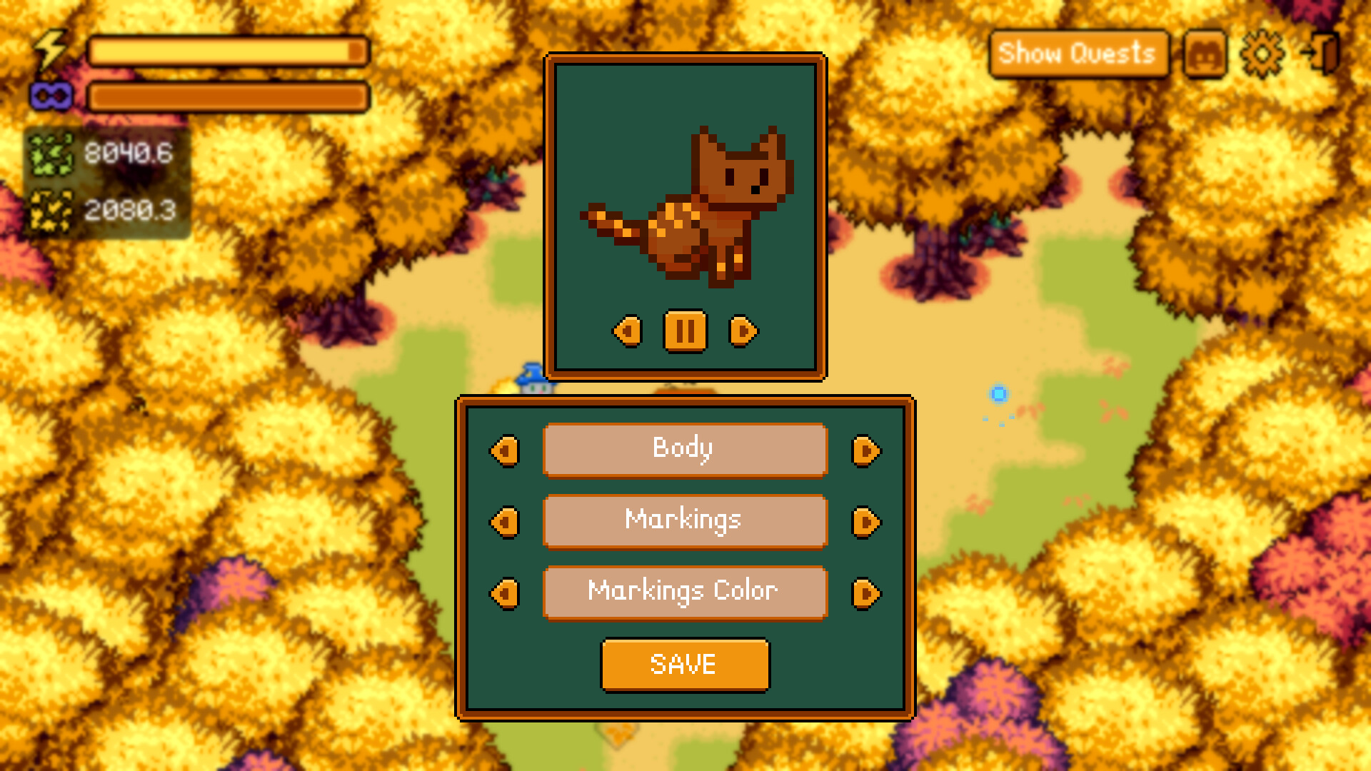 A cozy, upgrade filled, adventure that goes from curious kitty to unstoppable leaf-crunching beast.  Stomp, explore, and uncover cozy forest secrets with your magical fairy guide.
