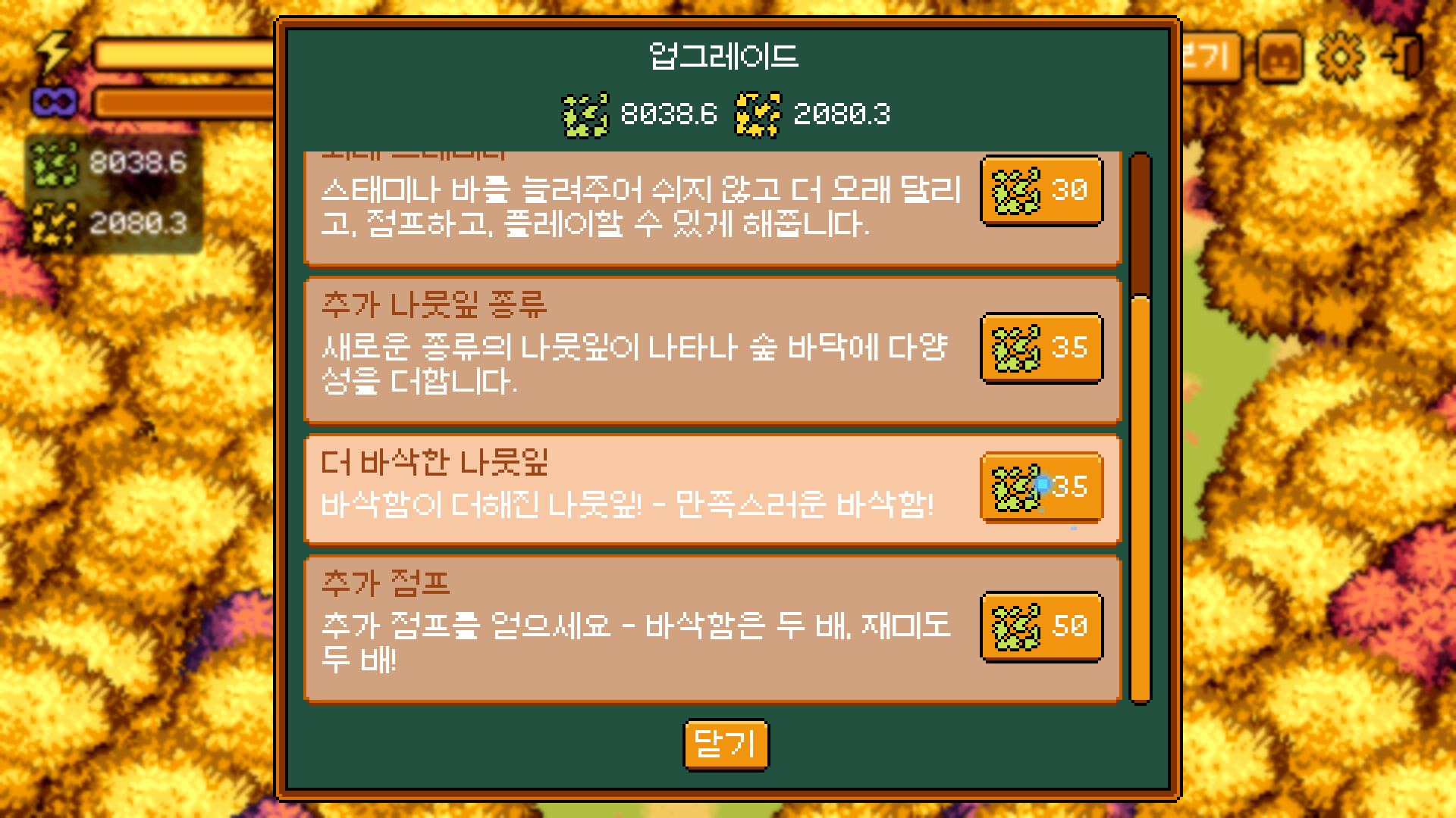 호기심 많은 고양이에서 멈출 수 없는 나뭇잎 밟기 야수로 변신하는, 아늑하고 업그레이드가 가득한 모험입니다. 마법의 요정 가이드와 함께 숲속의 비밀을 밟고, 탐험하고, 발견하세요.