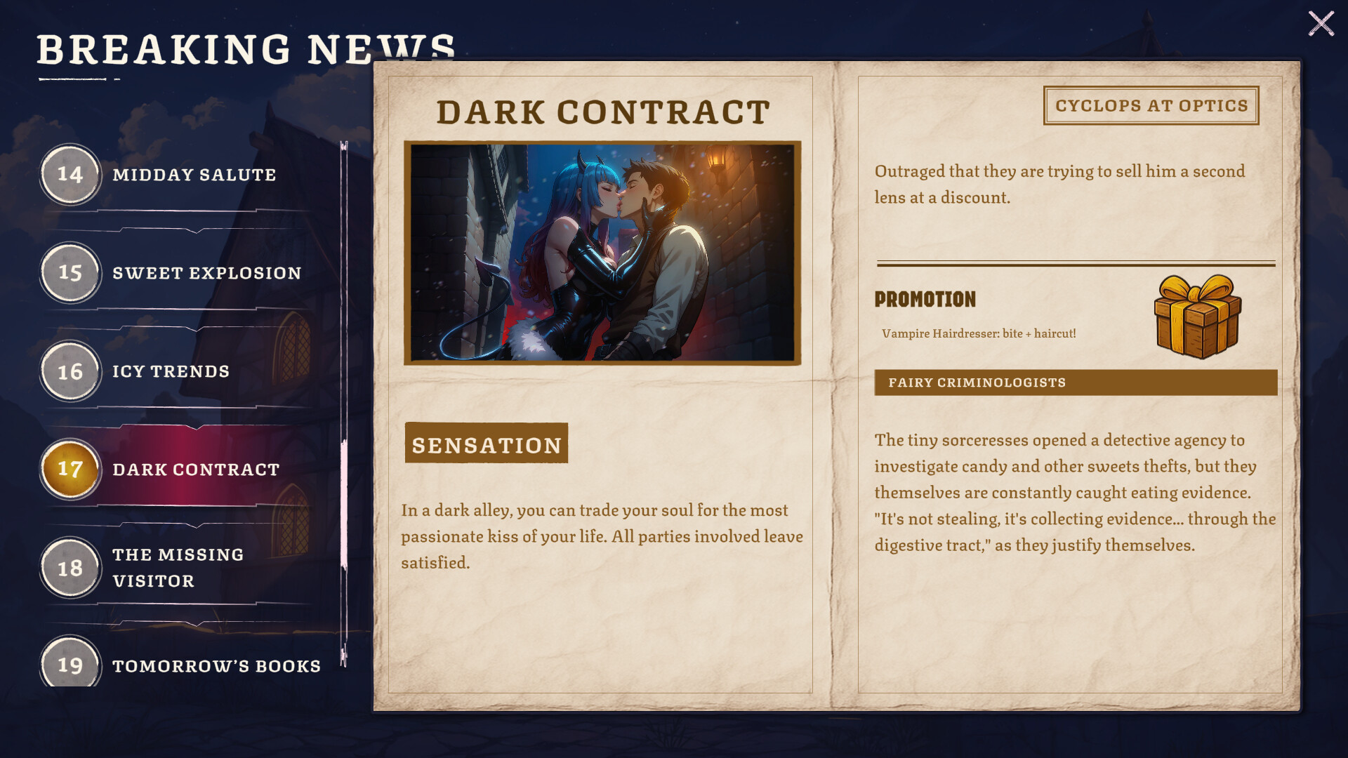 This is a visual novel for adults packed with hot encounters, cheeky humor, and the freedom to live out your wildest fantasies.