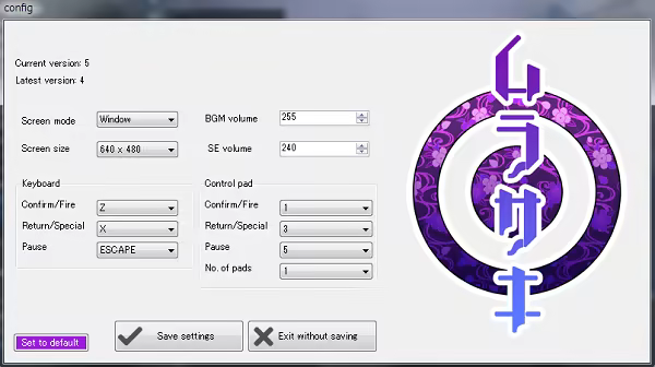 Here, you can configure the screen size, BGM/SE ratio, key bindings, etc.